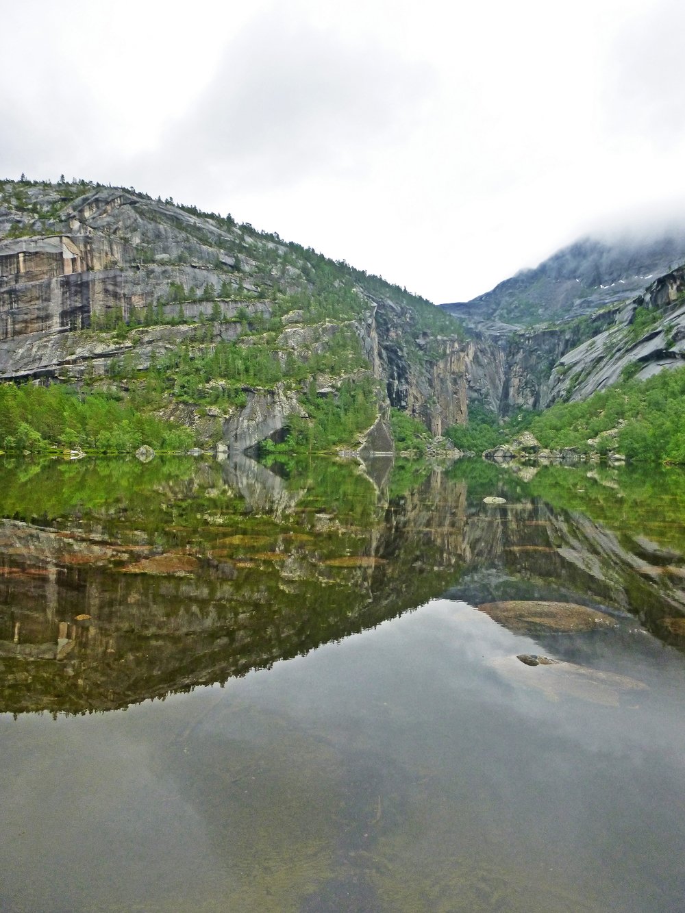 Along the sides of these rivers run a number of trails, and we explored the length of one to reach its base at a large waterfall. Some hikers continued on further up to the surrounding cliffs to take in the vista of the lakes from high up. There was also plenty to be seen from the sea, as a number of people took to Zodiacs to view the cliffs and the wildlife on and near the mirror calm waters of the fjord.