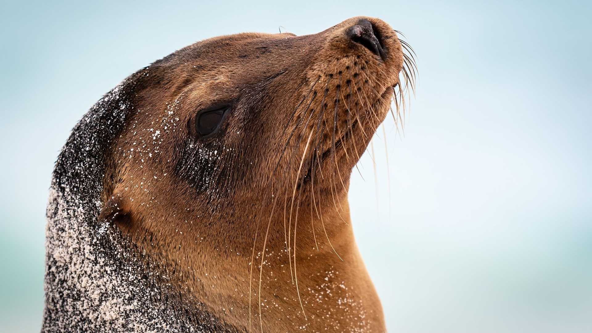 Relatively small and low compared to neighboring Santa Cruz, North Seymour is located to the north of Baltra. The island is dry with predominantly low shrubs, like prickly pear cacti. The incense trees are bare during the dry season. Seabirds like frigatebirds and blue-footed boobies nest on the island, and sea lions rest on the sand when they are not fishing. Land and marine iguanas also live here. Rabida is in the middle of the archipelago and has a striking red sand beach. We observed a small colony of sea lions of all ages resting or nursing. Behind the beach, American flamingos nest in a brackish lagoon. This island is full of contrasts and wildlife that we enjoyed observing during this day of expedition.