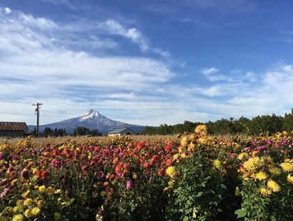 Our day started in Hood River, a community famous for windsurfing, craft beer, and local food. We boarded coaches and set out for Draper Girls’ Farm, a mother-and-daughter orchard and small farm in the Willamette Valley. We enjoyed fresh cider and apples, flowers, and goats and learned about their irrigation system, which flows directly from Mount Hood, the iconic glacier-clad volcano shining in the distance.