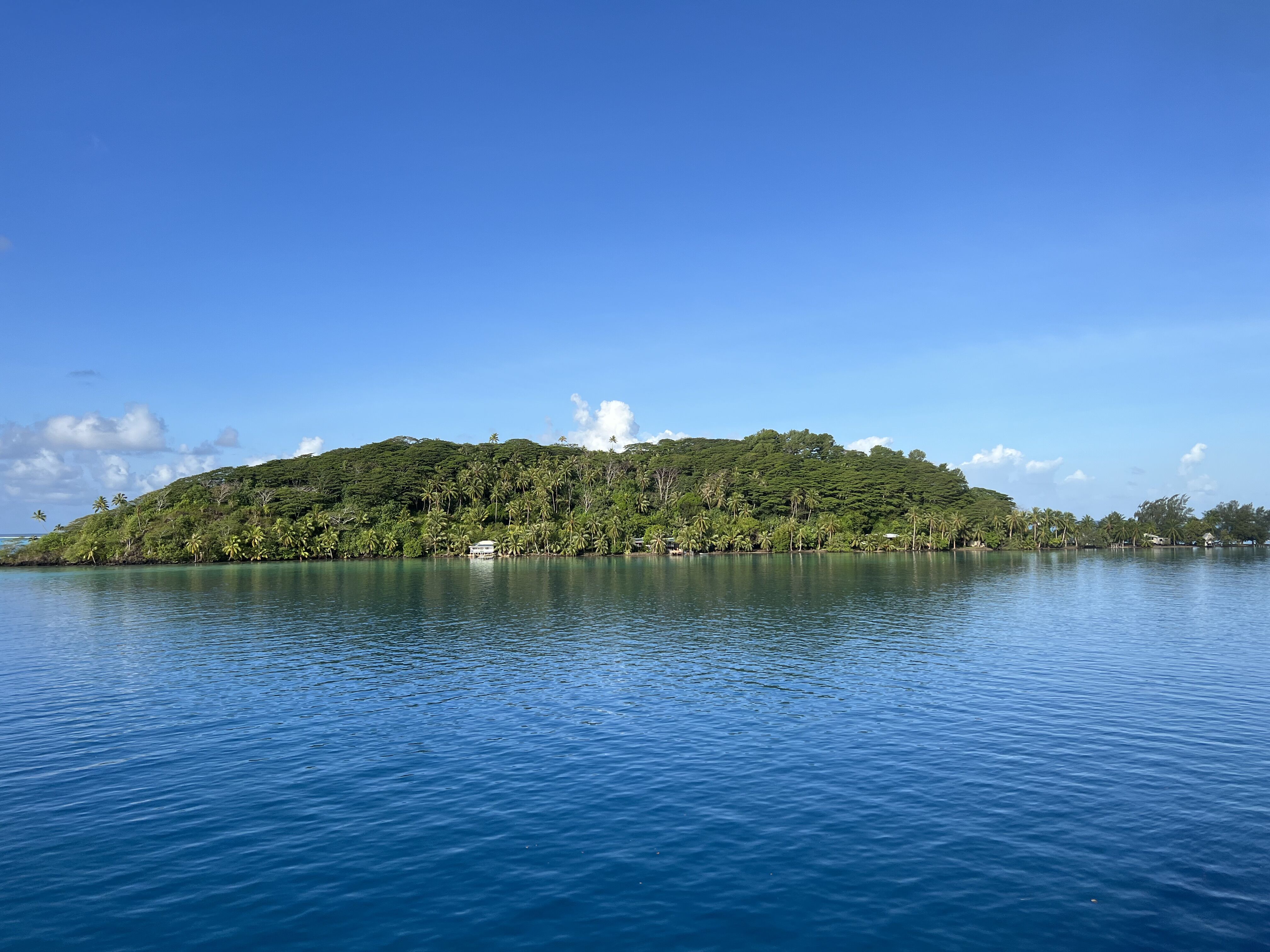 After lunch, we disembarked on Zodiacs to a small dock near the quaint town of Fare. Our adventure continued around the island on a ‘Le Truck.’ This fascinating tour, complete with an expert local guide, included a visit to the Maeva, an archaeological site and museum. Afterwards, we hiked to maraes, sacred areas, before getting back on the ‘Le Truck.’ We stopped at various places with spectacular views. We learned about traditional stonefish traps, and we had the chance to view Huahine’s sacred blue-eyed eels.