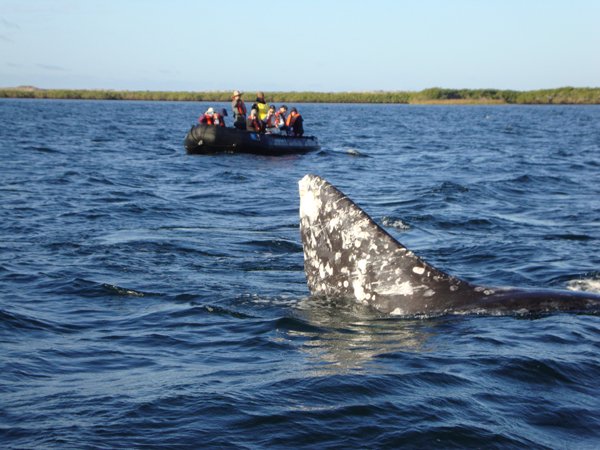 Our last day of whale watching in the northern part of the Magdalena coastal lagoon was special since we observed a trio of mating partners in action. There was a show of flukes, pectoral fins and strong breaths. Later, we transited southbound in the canal, with sights of sea birds, and anchored for the last outing. We discovered a fascinating world walking on the dunes and the sandy beach of Sand Dollar Beach at Santa Maria Bay.
