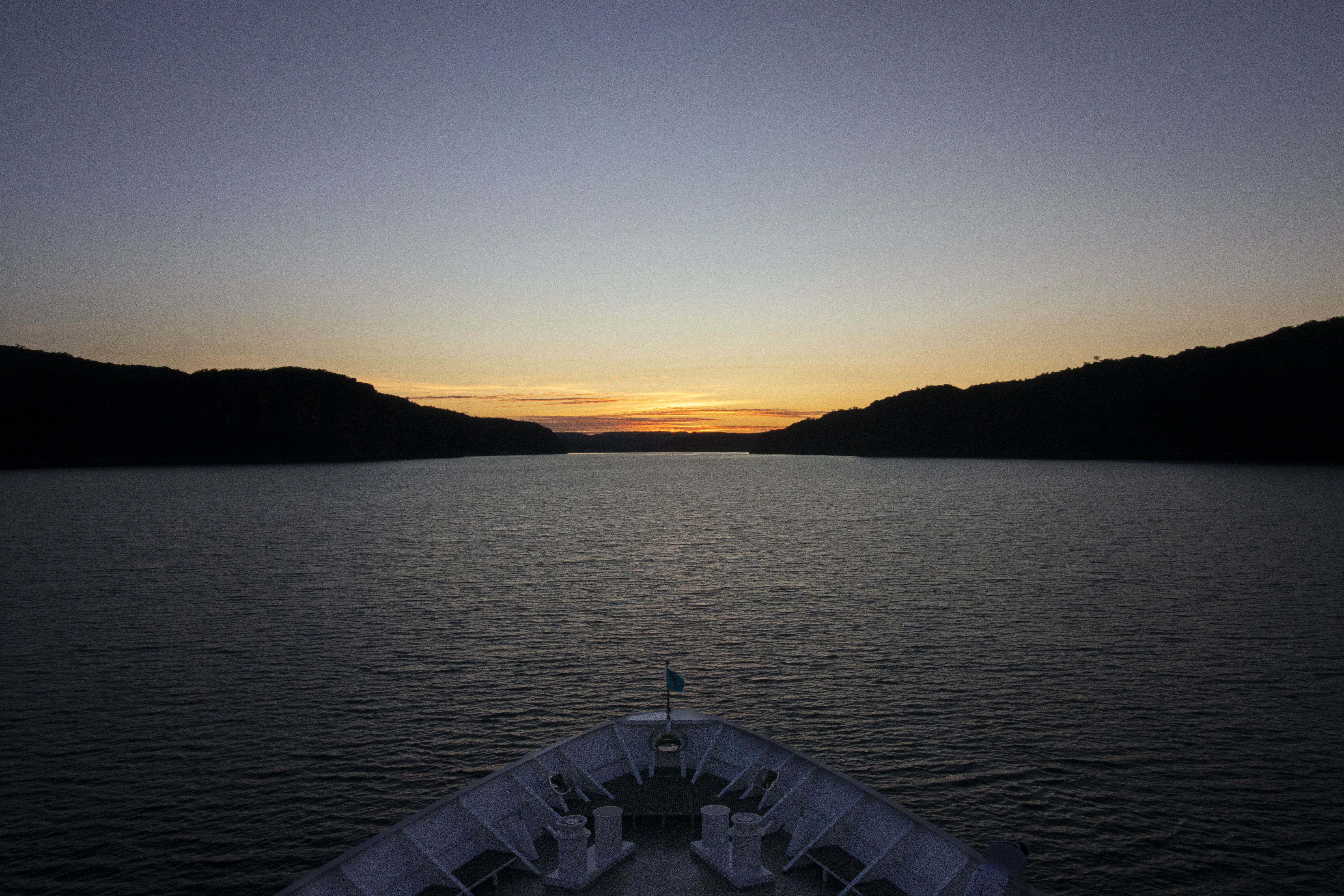 Our day began with morning stretches led by Lani on the Sundeck, offering a rejuvenating start to the day. After breakfast in the Outdoor Café, we embarked on a Zodiac expedition down the narrow Porosus Creek, home to an ecologically-vital population of mangroves and the estuarine crocodiles for which it was named.