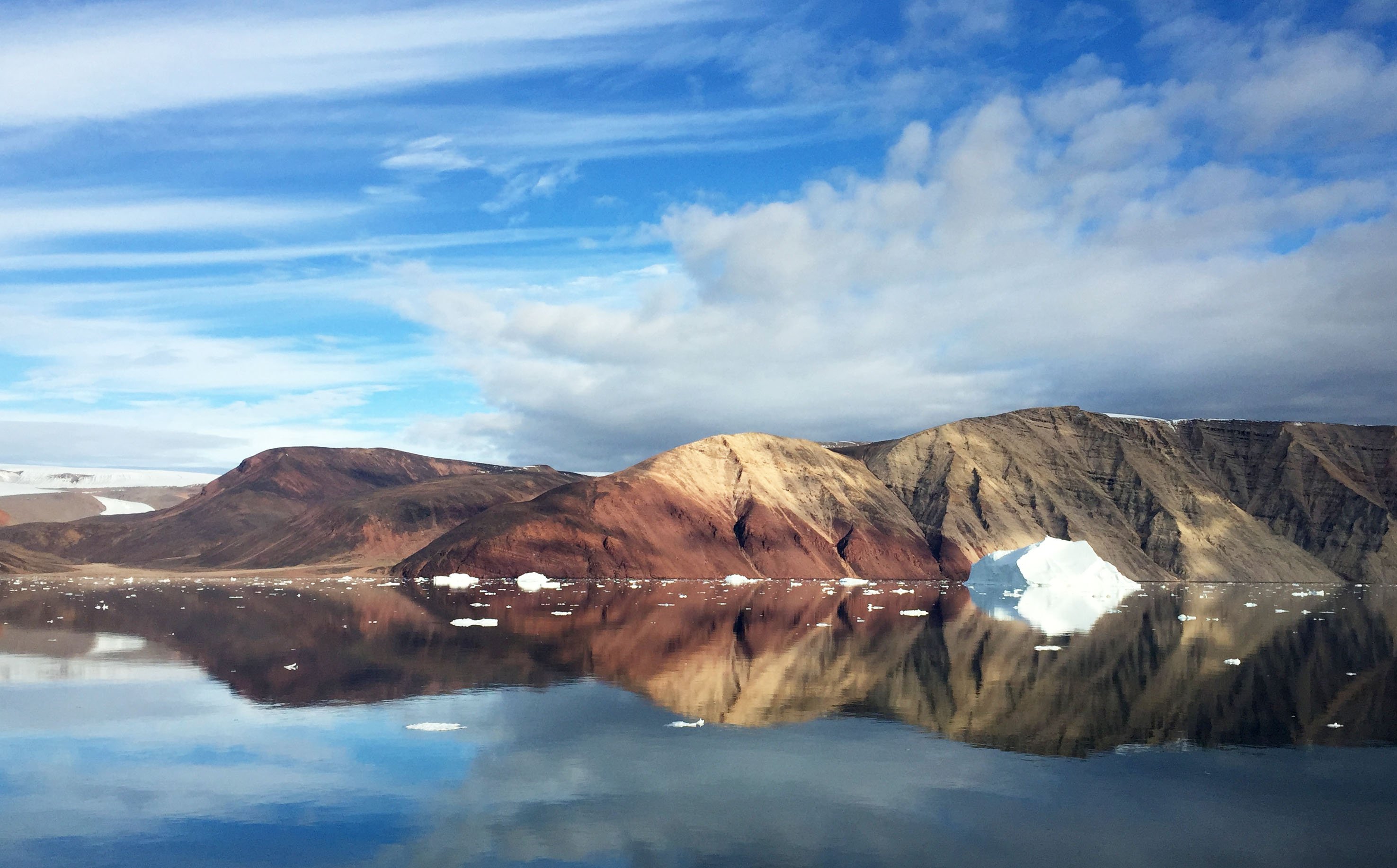 Turning into Bowdoin fjord, the usual plain Greenland landscape suddenly became into a geological art gallery. The rocks here are over 1,000 million years old, sedimentary marine deposits, sandstones mudstones, and carbonate beds laid down on the floor of a forgotten ocean. Despite this incredible age, they show no deformation, extraordinary given the caniptions our mantle has suffered over time. The weathering of these rocks has produced a painted landscape, ochre and olive, russet and rose, mauve and madder. From a pristine ice sheet behind the hills, a wide glacier flows down to the bay, launching a fleet of icebergs, each one manned by a crew of glaucous gulls sated with fish from the plankton-rich soup below the ice. On such a perfect day, we voted to stay here for the rest of the afternoon, and after landing intrepid long-distance walkers into the wilderness, we took to our Zodiacs and wandered among melting icebergs, butting through rafts of brash ice from the glacier. Kittiwakes darted down to snatch prey from the waters and we saw several gulls catch fish, probably the abundant polar cod, a sardine-sized species which thrives under ice floes and wherever ice melts. The glacier was set off perfectly against dark hills, and the bright sunshine sparkled off bergs and dazzled off still water. Switching off the engine and drifting in the silence we heard the sudden rush as an entire facet of the glacier collapsed, creating a huge wave that had the ice around us rearing and roaring. This is the High Arctic–blue sky, bare rock, and clean ice.