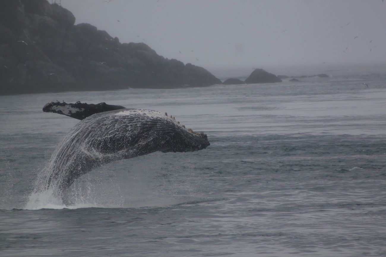 Even before we dropped anchor, we were greeted by a very energetic humpback whale who continuously breached and slapped its tail as we neared the Inian Islands. Not much is certain as to the reason of this behavior, but it is certainly an astonishing spectacle. The ability to launch a 45-ton animal out of the water is a great feat of strength.