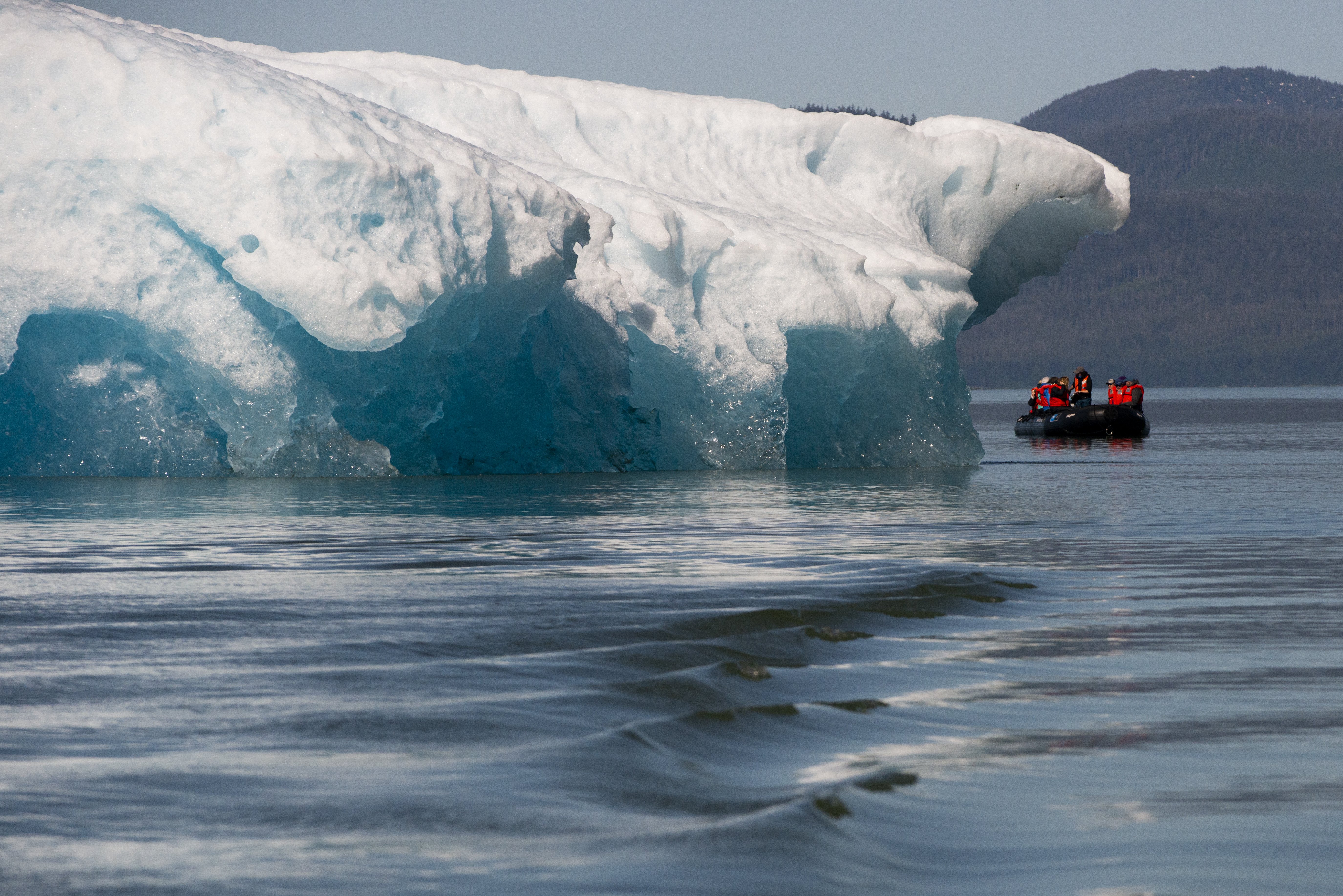 The amazing weather continues as we journey north on our five-day expedition of Southeast Alaska. After a stunning show by a pod of killer whales last night, just a few of us were out on the bow early morning to enjoy scenic cruising past the fishing town of Petersburg and stunning views of the Stikine Ice Field. We worked off our breakfast with an invigorating hike up to the muskeg bogs of Ideal Cove, before Captain Nettles navigated across the submarine moraine of LeConte Bay. Here we lowered small boats to explore an iceberg wonderland. Surprised to encounter less ice than in years passed, naturalists were able to weave around ice floes and reach the mighty face of the LeConte Glacier – a first for me, and one of the most spectacular sights I have seen in Southeast Alaska. Glaciers, icebergs, alpine vistas, bogs, rainforests – today had it all!
