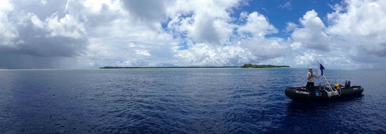 One such ability, which has been refined to a point of near artistry, is that of sailing navigation. The people of this region are renowned even among other seafaring cultures for their prowess upon the waves. Back onboard the National Geographic Orion we catch a moment of the pure dexterity of a large deep-water sailing outrigger canoe, adroitly slicing through the waves around us, packed full of young children all gleefully cheering as they race the wind. Our afternoon was spent enjoying the almost impossibly clear waters, discovering species that may be common here, but are rarely found anywhere else on the planet. As picture book clouds approached from the horizon and we finally had to depart from this idyllic island that is far, far away from everything, which is perhaps fitting, because it is truly the place of stories.