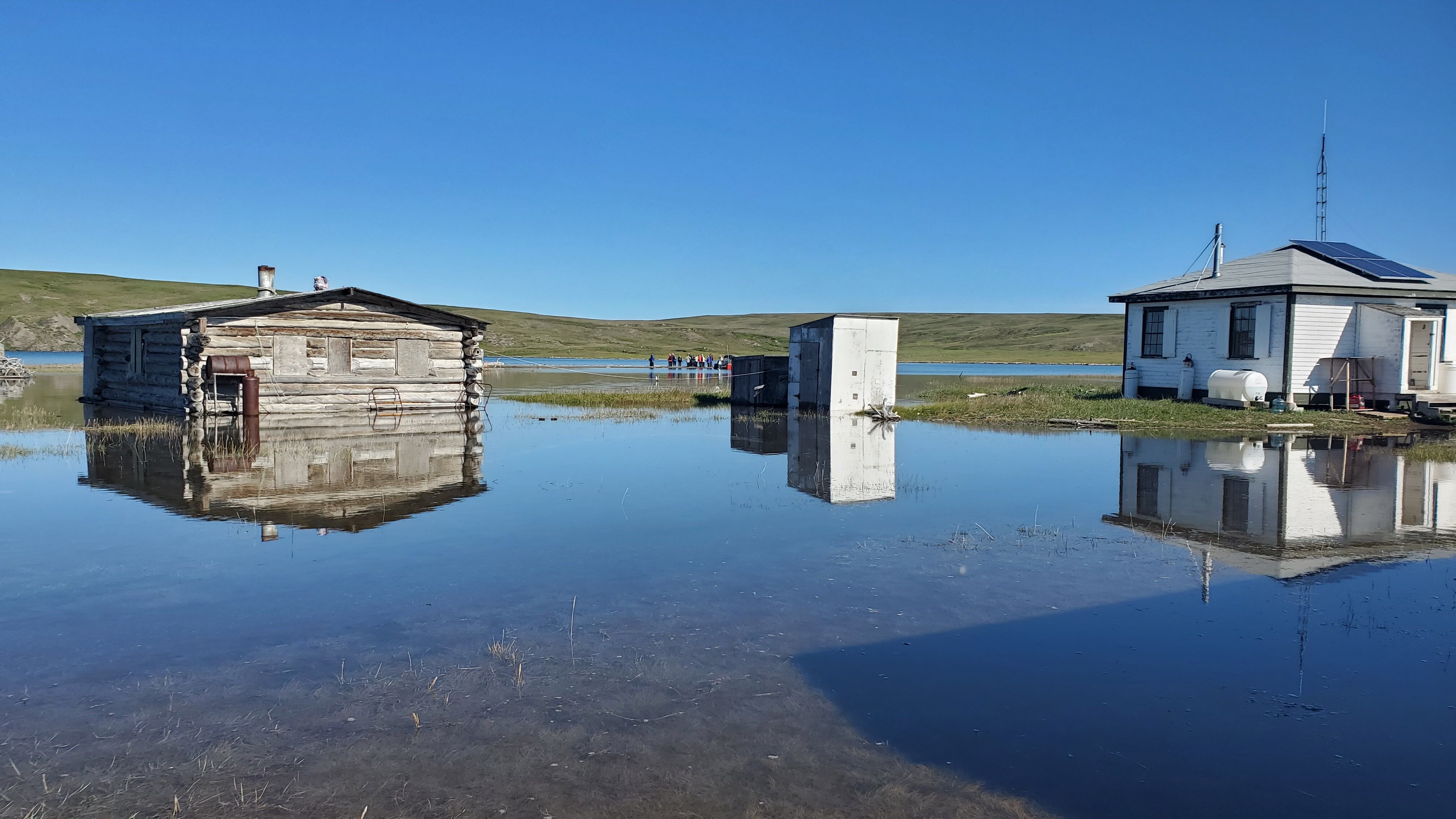 On our last expedition landing of the voyage, guests had the chance to visit Sydbay, the former site of the community of Sisimiut. Here we were able to see how this island has been continually inhabited since time immemorial. We viewed the remains of early Dorset housing, Thule tent rings, and sod houses standing alongside a modern Inuit seasonal fishing and harvesting cabin. It was not difficult to see what attracted people to this location for such a long time, as the landscape and seascape teams with a bounty of natural resources and traditional foods. Throughout our journey across Kalaallit Nunaat (the Indigenous name for Greenland) we were able to see the seasons begin to change. Even though we are just barely entering into late August, hints of autumnal colors, from browns and golds, to vibrant reds and majestic deep purples began to spread across the tundra. The beauty of the season made the island’s inhabitants, a colony of snow-white Arctic hares, stand out against the autumnal backdrop and black lichen covered rocks. A fine mist carried by ocean winds transformed this vibrant landscape into dreamy, muted colors that will stick with our guests long after our voyage is over.