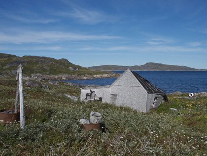 Since we passed White Bear Island last evening we logged 277 nautical miles before we stopped in the afternoon at the tiny settlement, Indian Harbour, that was once home to a few fishermen. After meandering in the archipelago along Cut Throat Island, Run-by-Guess Island and Ice Tickle Island, the National Geographic Explorer anchored in a bay, and the kayaks were launched and populated with guests who preferred to explore the local waters that way. Others went zodiac cruising between and around the small islands and still others took a long hike on the adjacent Mundy Island.