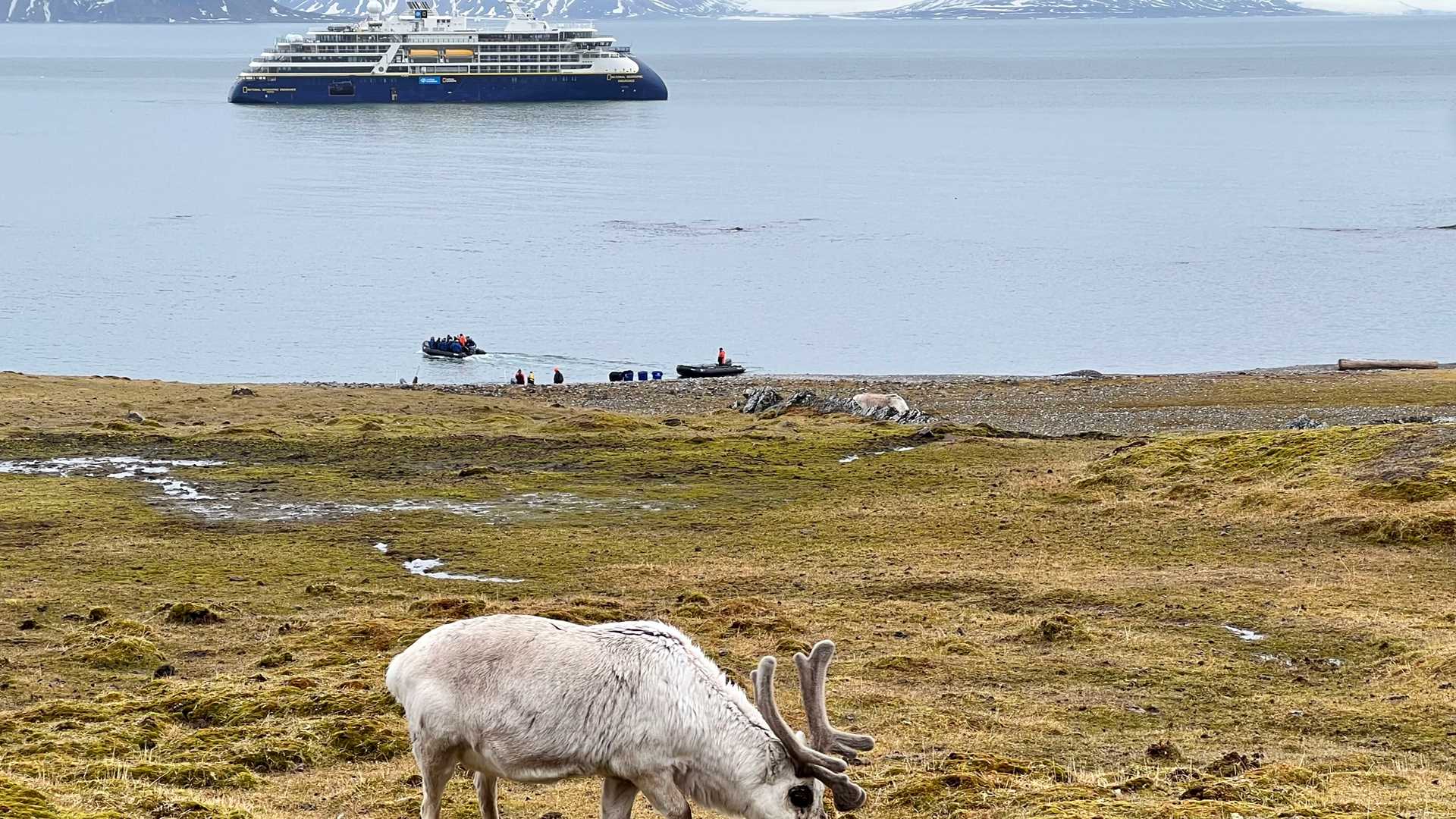 After a delicious lunch and a short positioning to the southern shore of Bellsund, we went ashore again for some more hikes during the afternoon, this time at a very interesting place called Ahlstrandhalvøya. Numerous beluga whales were slaughtered here for their meat and blubber during the 1920s and 1930s, and we observed a lot of evidence of this. Huge mounds of beluga skulls and other bones piled along the beach were particularly conspicuous. This was an interesting chapter of the archipelago’s cultural history; fortunately, it stopped a long time ago. Back on board, the bridge made an announcement over the PA system shortly before our daily recap started. It brought everyone to their feet to watch a group of belugas swimming alongside National Geographic Endurance. What a great way to finish another wonderful day exploring the High Arctic!