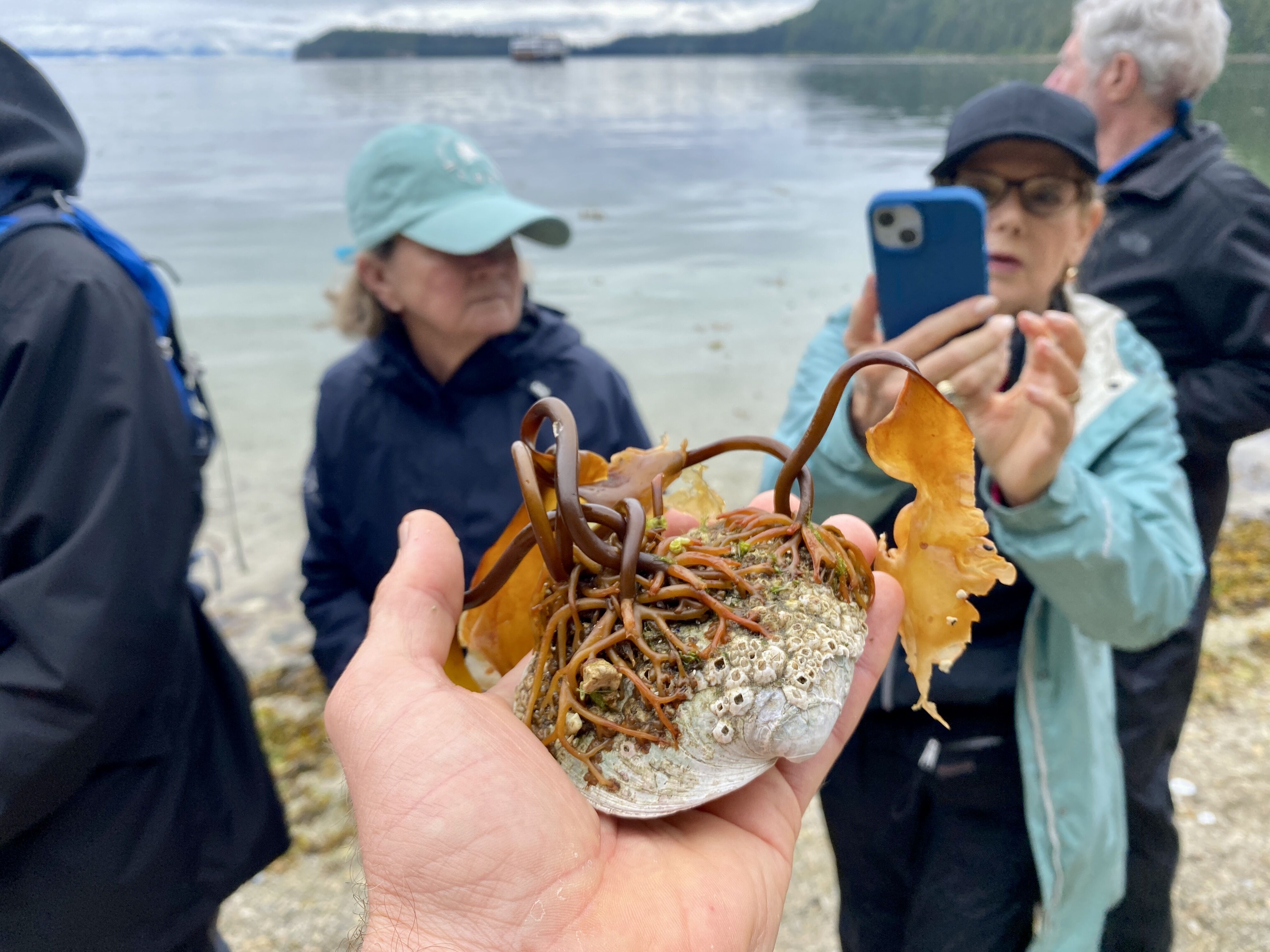 Rugged, remote, and protected from the southeasterly winds and Pacific swell, Idaho Inlet welcomed us this morning. Those who suited up for a gloriously misty Alaskan hike were rewarded with fantastic beachcombing, blooming meadow wildflowers, and wild blueberries perfectly ripe and ready to devour right off the dew-laden bushes. Steller sea lions cavorted along the shoreline as we kayaked around nearby Shaw Island.