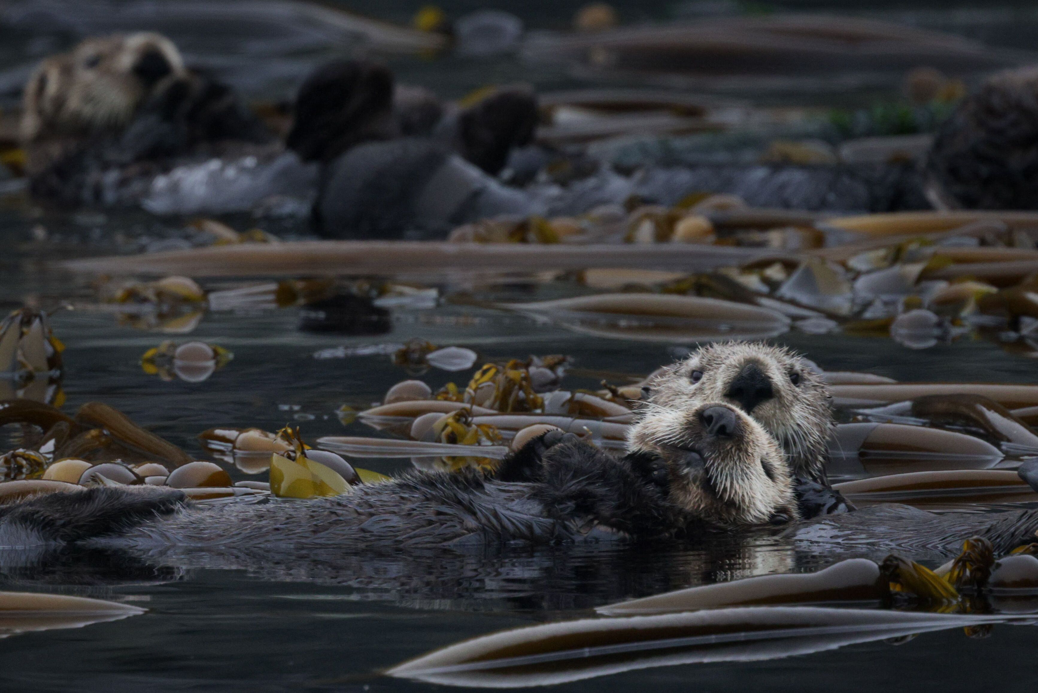 Photo caption and photographer: Sea otters (Enhydra lutrus) call the kelp forest home for many different reasons, one being that it is a safe harbor place to raise their pups. Photo by Brooke Jackson
