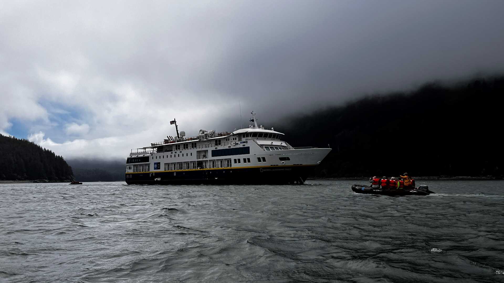 We had a wonderful day! We were able to see an abundance of life in the Inian Islands! Whales came bursting from the sea below. These humpback whales can be up to 60 feet long. The whales push fish towards the shoreline so they can feed. Upwelling from below also pushes rockfish to the surface. Unable to decompress, the fishes’ eyes and bladders bulge, and the fish become food for the Steller sea lions feasting in the waters. The sea lions are all males, bulking up to become larger. Bulls can be up to 2500 pounds and eleven feet long. A series of birds feed on these fish. Bald eagles are the primary feeders. Juveniles have brown heads. As they mature, the feathers on their heads turn white, and their beaks turn yellow. We also saw pigeon guillemots and cormorants. These marine birds swarmed the island, and drifting around the rocks was another endearing surprise. Sea otters! Multiple sea otters were tied together to form what is called a raft. These sea otters have millions of hairs, so many that they do not need blubber or brown adipose fat to keep them warm. Later in the evening, guests entered Dundas Bay for a relaxing and meditative hike. Dundas is part of Glacier Bay National Park. Guests had the chance to kayak and Zodiac as well. During these amazing excursions, the undersea team collected footage that included marvelous views of massive ribbon kelp. The footage played during cocktail hour. Overall, it was an exceptional day!