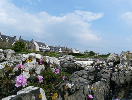 Scotland’s west coast is a maze of islands and islets each with a personality all its own. Iona is barely a dot upon the chart. What drew Ireland’s Columcille to this tiny isle near 1500 years ago? One wonders if it was the sense of peace we felt or did he and his followers create a spiritual bond with the land that will last through all eternity. As we sat upon the crest of Dun I we could close our eyes and hear the sound of the wind and the creaking of rare corncrakes just as St. Columba did from that same point. But eyes wide open we saw a much different sight. Flocks of tourists poured from ferries, large and small and disappeared into the island’s tiny town. They and we did not come to raid as the Vikings did so long ago but to make a pilgrimage to the place that has become the heart of Celtic Christianity. From the Abbey the sounds of hymns drifted into gardens filled with sweet smelling herbs and flowers. Life-like carvings of birds and flowers adorned the cloister columns. Celtic crosses were silhouetted against a sky that alternated between gray and cerulean.