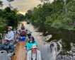 The kayakers had perfect, cool weather for a quiet paddle downstream with the current. They observed a low hanging sloth, monkeys, and birds flitting in the branches overhead. The exercise was welcome after a good number of delicious gourmet meals aboard Delfin II. Later, we went by skiff further up the Yarapa River, winding our way through a small channel into a peaceful oxbow lake. Here we found giant water lilies, yellow-headed blackbirds, and a pair of nesting jacanas with four eggs in a nest on a lily pad.