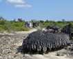 Today our expedition headed toward the two youngest of the Galapagos Islands. With the first beams of sun, early risers tried to find some marine life from the sundeck while we circumnavigated the northern shore of Isabela Island. The gigantic Ecuador and Wolf volcanoes looked spectacular with colorful lava fields reflecting the colors of the sunrise. After breakfast the captain announced our arrival at the equator and we celebrated with a special ceremony, limbo-ing underneath the Ecuadorian flag. That was quite entertaining! After dropping anchor at Punta Vicente Roca, we soon headed on Zodiac rides along the northern coast of Isabela, in search for brown Noddy terns, blue footed boobies, and frigate birds. The sun appeared, warming up this place and marine iguanas did not lose time jumping in the water trying to eat some seaweed. There were also some Galapagos penguins feeding on small black striped Salemas. After the Zodiac ride we decided to go snorkeling. We spotted several varieties of fish, but probably the highlight were the Pacific green turtles gently swimming with us and resting in the bottom of the calm bay. Of course, Galapagos penguins and flightless cormorants delighted our guests, who enjoyed swimming with incredible creatures like nowhere else in the world.