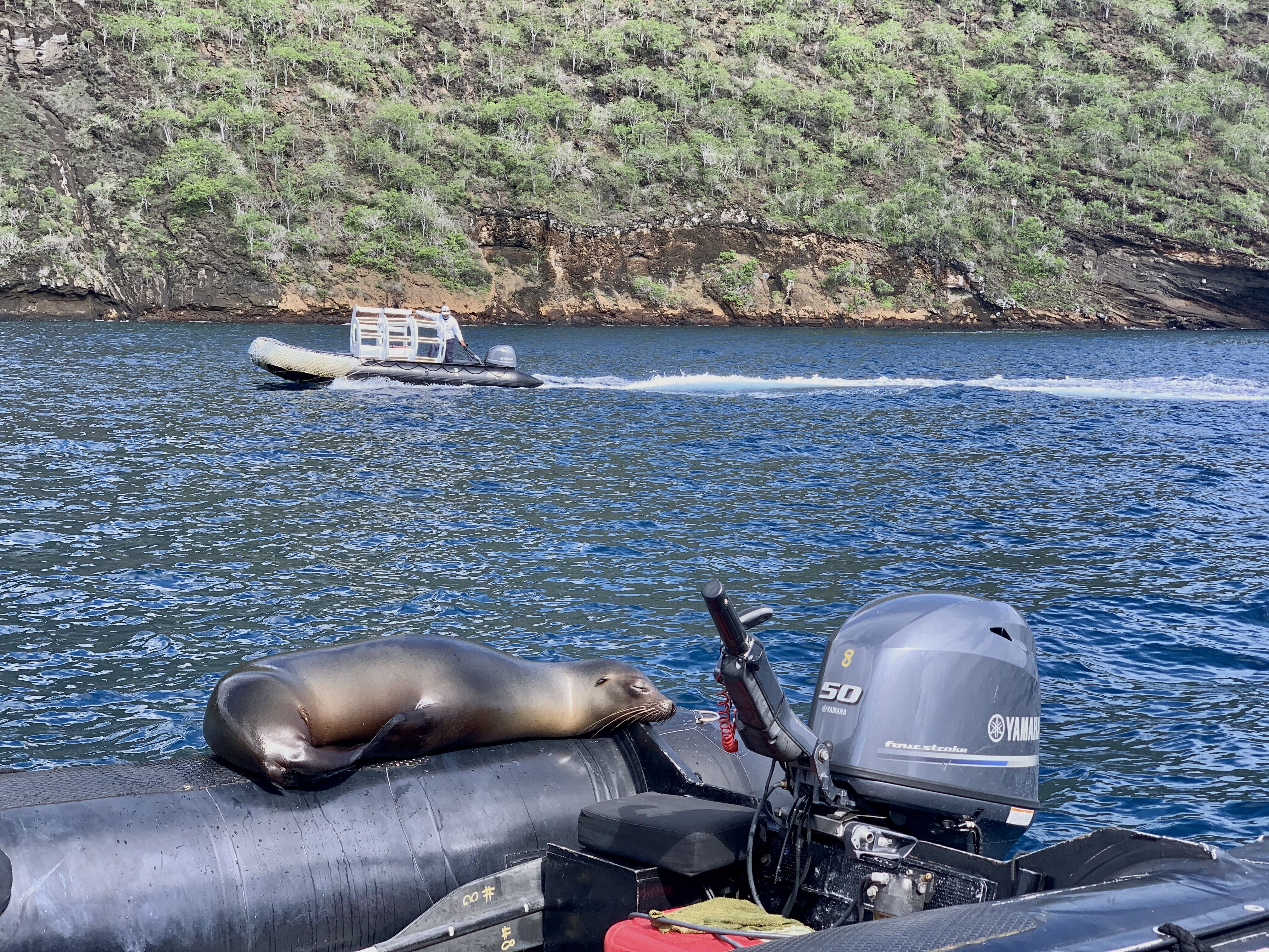 Today we spent the day exploring the western Galapagos Islands. We visited Punta Vicente Roca on Isabela Island and Punta Espinoza on Fernandina Island. This was a remarkable day because we observed some of the most iconic of the endemic species in the Galapagos, such as the Galapagos penguin, Galapagos sea lions, marine iguanas, and flightless cormorants.