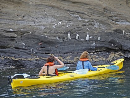 We arrived to Punta Vicente Roca, one of the most fascinating visitor sites of Isabela Island. As soon as we dropped anchor we headed out on a Zodiac ride on search for Galapagos penguins, flightless cormorants, Galapagos fur seals and many shore birds resting and nesting along the titanic cliffs on this island. The bay area was full of pacific green sea turtles, some eating sea jellies and others just resting on the sandy bottom of these calm waters. After we were back onboard we got ready to go out again, but this time was to explore the wonders of the underwater ecosystems in Galapagos; many turtles were seen, sea lions playing with us, flightless cormorants diving and searching for fish in between the rocks, king angel fish, and even penguins were spotted swimming near our guests. What a wonderful morning we had.