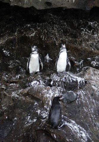 Across from Isabela lies Fernandina, probably one of the last pristine islands on Earth. A dark, tall island covered in fresh basalt rock, it is certainly an inhospitable place. From a distance it seemed devoid of life, but we soon realized that this was not the case. Punta Espinosa, a tiny peninsula, is the habitat of a huge colony of marine iguanas. The tide was low, and in the early afternoon many of them were returning to their favorite spot where they could soak up the sunshine.