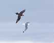 An hour later we dropped anchor at the base of the dramatic cliffs of Punta Vicente Roca, Isabela. Isabela is by far the largest island in the Galapagos archipelago, and it is shaped like a seahorse. The crew lowered our fleet of four Zodiacs and we went off to explore the coast. My group counted sea turtles, and we saw our first flightless cormorants. Mario and I, in our Zodiac, had just turned to head back to the ship when I spotted the spout of a whale! We were delighted and called all the other Zodiacs to come and see the whale. We had found a female Bryde’s whale and her small calf! We got a great, close look at the pair when they surfaced near our Zodiac. The Zodiacs followed along with the whales and we especially enjoyed seeing the baby whale splash and flip on its back; its pale belly looked turquoise just under the waves.