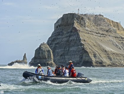 Later in the morning we crossed the equatorial line from north to south and arrived to Punta Vicente Roca, the visitor site on Isabela Island. Here the scenery is dramatic due to the collapse of the volcano thousands of years ago, leaving volcanic dikes and more features that explain how the eruptions occurred. We took a Zodiac ride to visit the shoreline and the sea birds and some sea turtles gathered to rest. To finish the morning we jumped in the water to see a variety of tropical fish, penguins, cormorants, sea lions and turtles.
