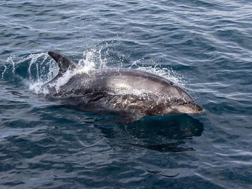 Our journey started with the first light of day. The early risers were on the observation deck with cameras and binoculars in hand, scanning the ocean for marine life. As we navigated along the north side of Isabela, we saw several types of seabirds and some Galápagos sea lions. After breakfast we spotted a large pod of bottlenose dolphins, maybe 300 or more! As soon as we approached them, they started to bow ride and jump. It was a fantastic experience being surrounded by this group of playful marine mammals. Moments later we crossed the famous Equator line and had fun with a little bit of ceremonial entertainment as we took part in the tradition of the crossing.