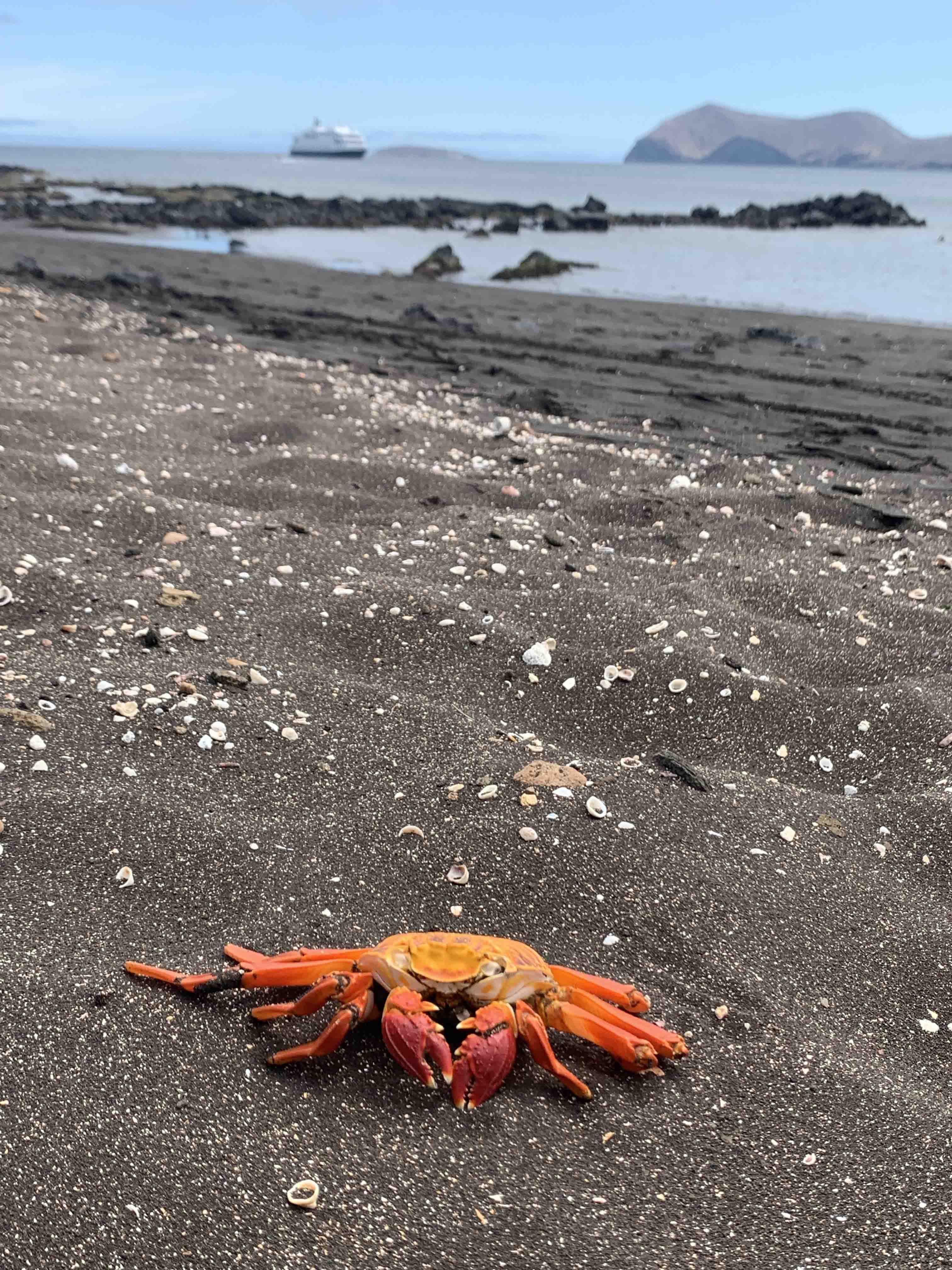 We started the day with excitement as we landed on the beautiful, pristine coast of Isla Genovesa - a true birder’s dream. Along the sandy beaches and steep cliffs of Darwin Bay, we were surrounded by an incredible array of birdlife. Frigatebirds soared closely overhead with their red pouches on full display, while Nazca and blue-footed boobies nested along the rocky ledges. Swallow-tailed gulls called out as we walked past. In the distance, we saw the stoic and elusive short-eared owl. The island was alive with color, sound, and constant movement. Between our excursions to Isla Genovesa, we snorkeled near Prince Philip’s Steps and discovered a vibrant world beneath the waves. Schools of fish swirled around us, a fur seal turned in the water as if dancing on cue, and sea lions relaxed nearby. As our last snorkeling adventure came to a close, we spotted a sea turtle resting calmly in a crevice. As the sun retreated into the sky on our last return to National Geographic Endeavor II, we reflected on the sheer magnitude of what we witnessed on our last full day. Isla Genovesa, like the other islands, gave us a connection to a sacred world. The harmony between land, sea, and sky reminded us how deeply interconnected, vital, and fragile these ecosystems are. Watching birds tend to their nests and marine life swim effortlessly, we were struck by how little space there is between wonder and reverence. We recognized that our journey wasn’t just about observing unique wildlife, it was about feeling part of something grander and beautifully ancient.