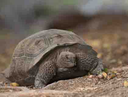 Today our guests awoke to find sunshine and a calm ocean. After a delicious and rather substantial breakfast we boarded the Zodiacs and motored in to land on a steep black sand beach at Urbina Bay. This morning we had the choice of a long two mile walk, or a shorter one mile walk. We dried our feet and put on our hiking shoes and headed off on a loop trail. The crest of the black beach was pitted with sea turtle nests. Four groups, with a naturalist leading each one, went out this morning and we all had a marvelous time! On all the hikes we saw at least one giant tortoise and several large yellow land iguanas. Galapagos hawks, yellow warblers, mockingbirds, and many finches were also seen. We hiked along a sandy and rocky trail on terrain that had been part of the sea floor until it was suddenly uplifted in 1954. The naturalists pointed out coral heads and tubeworms that had been left high and dry when the magma shifted below ground and the coast was pushed up.