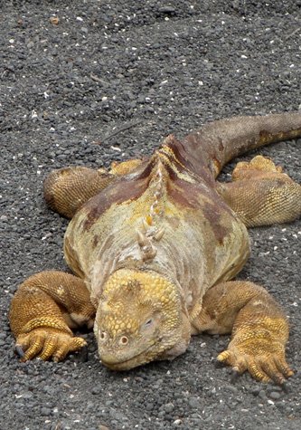 Urbina Bay is a fascinating site of great geological and historical interest. In 1954, an area of marine reef (about 1.5 square kilometers) was uplifted almost instantaneously by as much as 15 feet, leaving many marine creatures exposed. During our hikes this morning, we were able to see the evidence of this occurrence. We also saw some giant tortoises, a dome-type population, in addition to three species of land iguanas, eating and warming up in the sun.