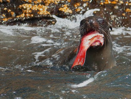 Lunch was a special one today, as a typical Ecuadorian menu was offered. It was both very varied and delicious! During lunchtime we navigated northbound to reach our next destination, Tagus Cove. Also part of Isabela, this place offers a safe anchorage so it was a popular place known to many captains in the past. Evidence of this has been left as graffiti either painted or carved in the soft tuff rocks of the area. The oldest graffiti found here dates back to 1836, the year after the HMS Beagle dropped anchor in this very same place. To make the most of the calm waters of this bay there was a chance to explore its beautiful coast by kayak, and other guests decided to enjoy the underwater world of Tagus Cove and take a last chance to snorkel with Galapagos penguins and flightless cormorants.