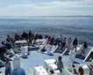 Once back at the beach some of the group went for a swim. Snorkeling was not possible as the waves were breaking and had churned up the sand so visibility was poor. The Zodiacs came to pick us up and we jumped in quickly when the waves were calmest. There were some impressive breakers but we timed our departure from the beach successfully and no one got drenched! The kids had fun learning to drive a Zodiac with Paul and panguero Edwin, and we were all back onboard by noon when the Captain set off towards the north and Tagus Cove.