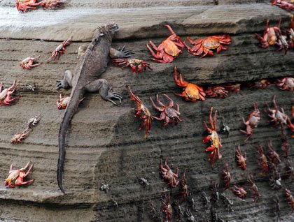 The day is young as we start out for an early walk at Urbina Bay on the west coast of Isabela Island. Isabela is the largest island with a landmass of over 4,000 square kilometers with six large shield volcanoes. We land at an area that was completely underwater prior to 1954 and due to a volcanic uplift, the seafloor was pushed up in certain areas to over 4 meters out of the water. Venturing inland we encounter various remnants of the submarine uplift such as shells, sand dollars, and Venus mollusk shells. Land iguana burrows litter the ground under the vegetation with an occasional iguana peeking out from their realm. Incense trees, Yellow Cordia bushes, and poison apple trees encircle us as we continue on the path and we come upon a small Galapagos tortoise that is “bulldozing” through the dense vegetation. Darwin finches line our trail and are continually singing as the season provides abundant food. After our hearty breakfast we return to Urbina bay beach to snorkel and eventually have a “Mega” swim to the National Geographic Islander.