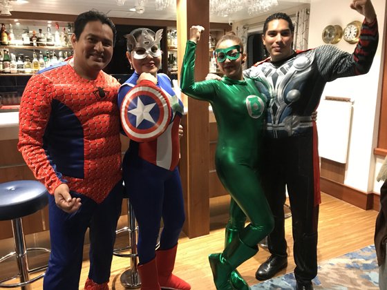 We are now back onboard celebrating Halloween. I have done many Daily Expedition reports, and this one is dedicated to the more than 60 people who operate as crew, staff, and officers, working tirelessly day in and day out. They always make sure all things are considered so that our guests have the best time of their life in the Galapágos Island. To our guests and our super heroes.