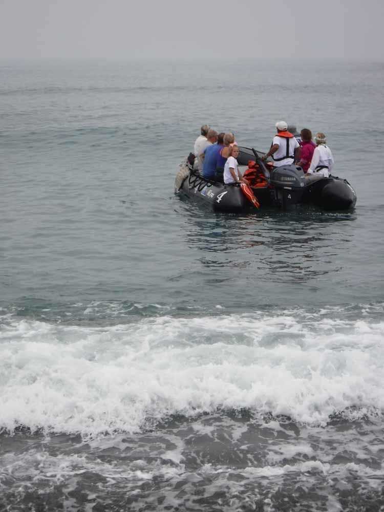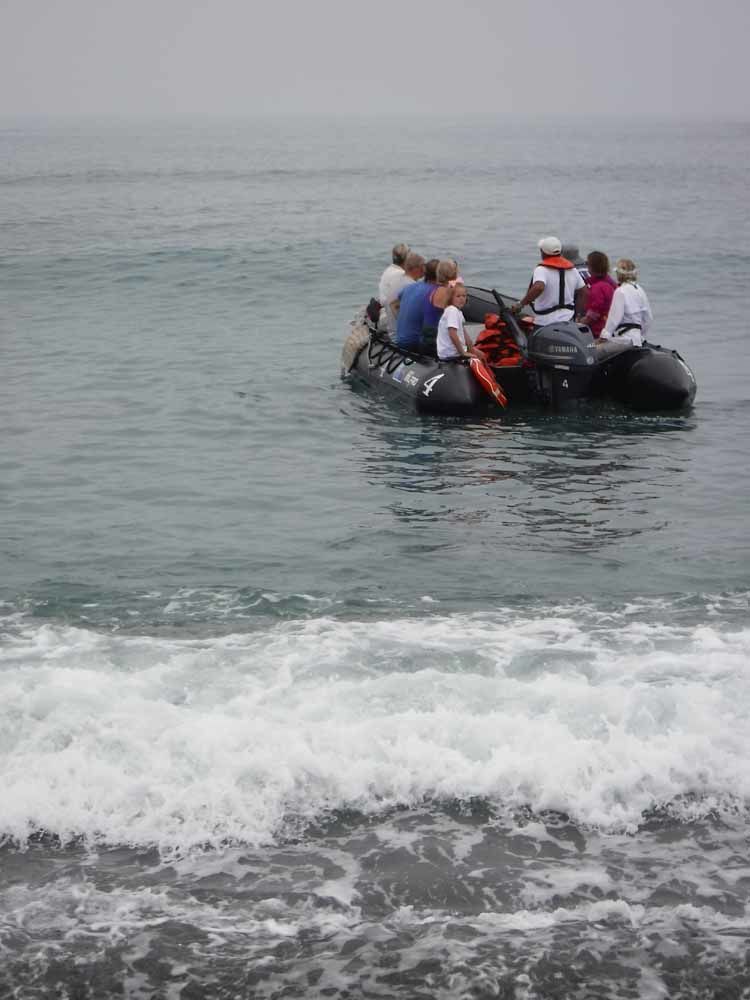 Today we explored the large sea-horse shaped island of Isabela. In the morning, we hiked at Urbina Bay at the base of Volcan Alcedo. We had 3 walk options to choose from: a long rocky hike, a photo walk, or a slightly faster paced nature walk. Back on the beach, we swam, snorkeled and the kids played in the surf. As we returned on board we had fun jumping from the ship!
