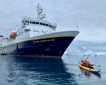 The day started with early whale watching while navigating across the channel between Isabela and Fernandina islands. Soon, a small group of dolphins were spotted, and we had the chance to see their graceful jumps as they swam around us. After breakfast our first group departed to the island with the aim of walking over two miles on the uplifted shore at Urbina Bay. The trail at this site is covered with signs of marine life that once lived on these grounds. During the hike we found many Galapagos giant tortoises in the middle of the trail, sunning and posing in front of our cameras. Bright yellow land iguanas were also active this morning and displayed territorial behavior as they crossed from one side of trail to the other.
