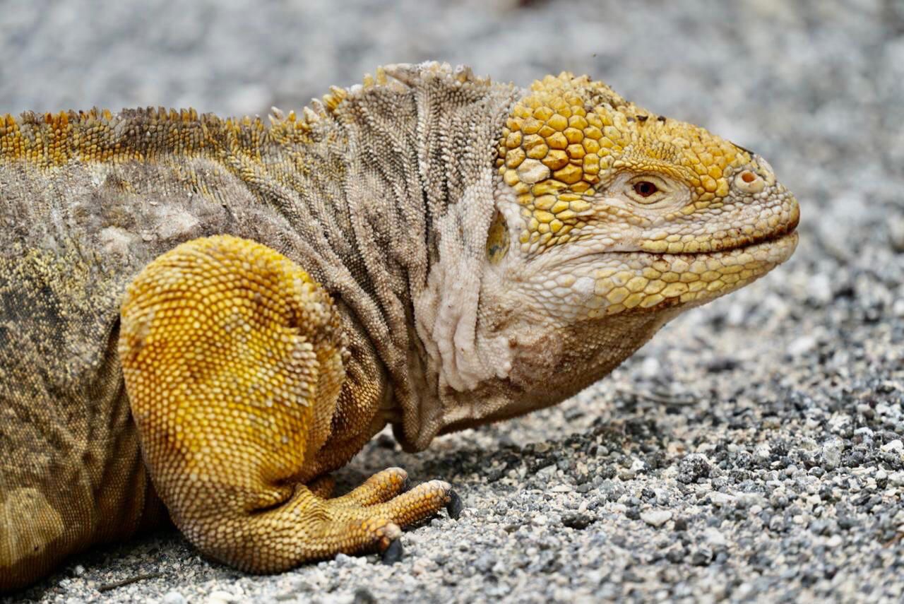After breakfast, we explored Urbina Bay. As the Zodiacs pulled onto the black landing beach, the sun cast a beautiful light onto the green vegetation. Conditions were perfect for photography and hiking. Donning our hiking shoes and leaving the sand behind, we took to a trail that led us inland onto flat terrain full of vegetation. We saw many muyuyu trees, poison apple trees and yellow cotton flower bushes. We quickly spotted our first giant tortoise of the expedition, calmly resting on the side of the path. The tortoises eventually climb to the highlands of Alcedo Volcano, and they return to the lowlands to nest or drink from cacti during the dry season. Walking through the forest, we saw two more tortoises, adult males with dome-shaped shells. We also came across yellow-colored land iguanas as we walked. Underfoot, we observed petrified barnacles, sea worms, shells and sea urchins—all mute witnesses of the sea uprising that occurred in the 1950s. This uprising lifted what was once the ocean floor to the surface we were standing on. At the end of the hike, we enjoyed a nice swim on the beach before returning to National Geographic Endeavour to move to our next destination, Tagus Cove.