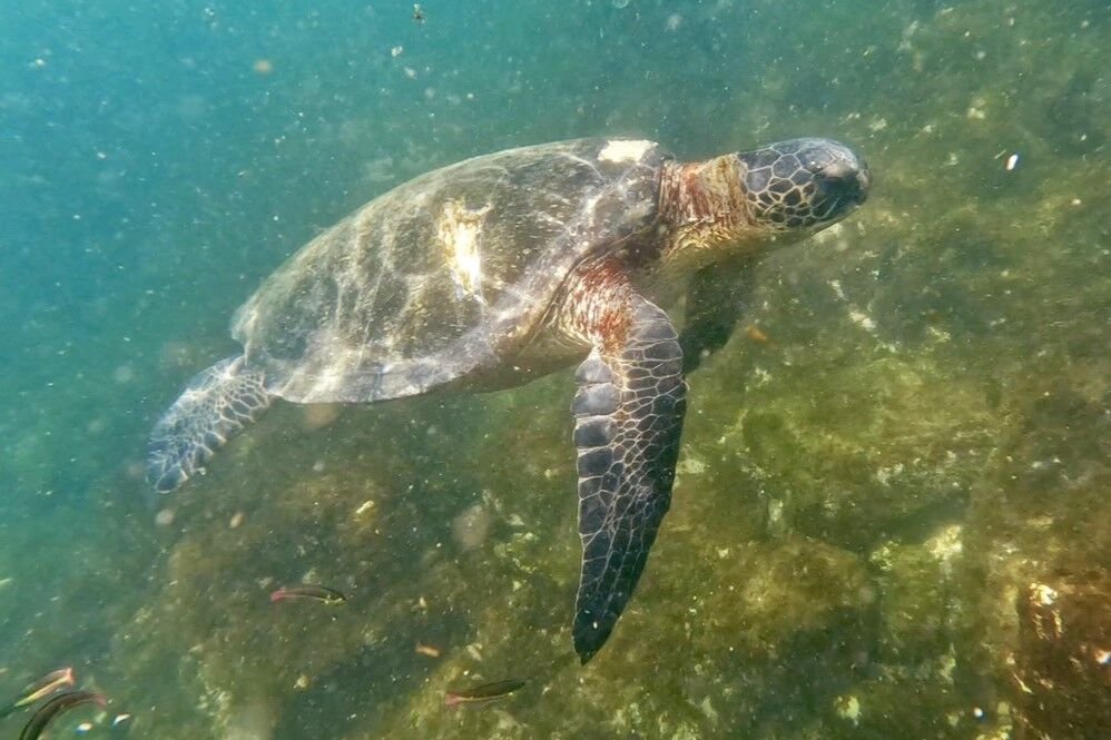 In the afternoon, we navigated north toward Punta Vicente Roca. At 2:15 PM, we embarked on an unforgettable snorkeling experience along the island’s coastal cliffs. We had the incredible opportunity to swim alongside playful sea lions, Galápagos penguins, flightless cormorants, and sea turtles.