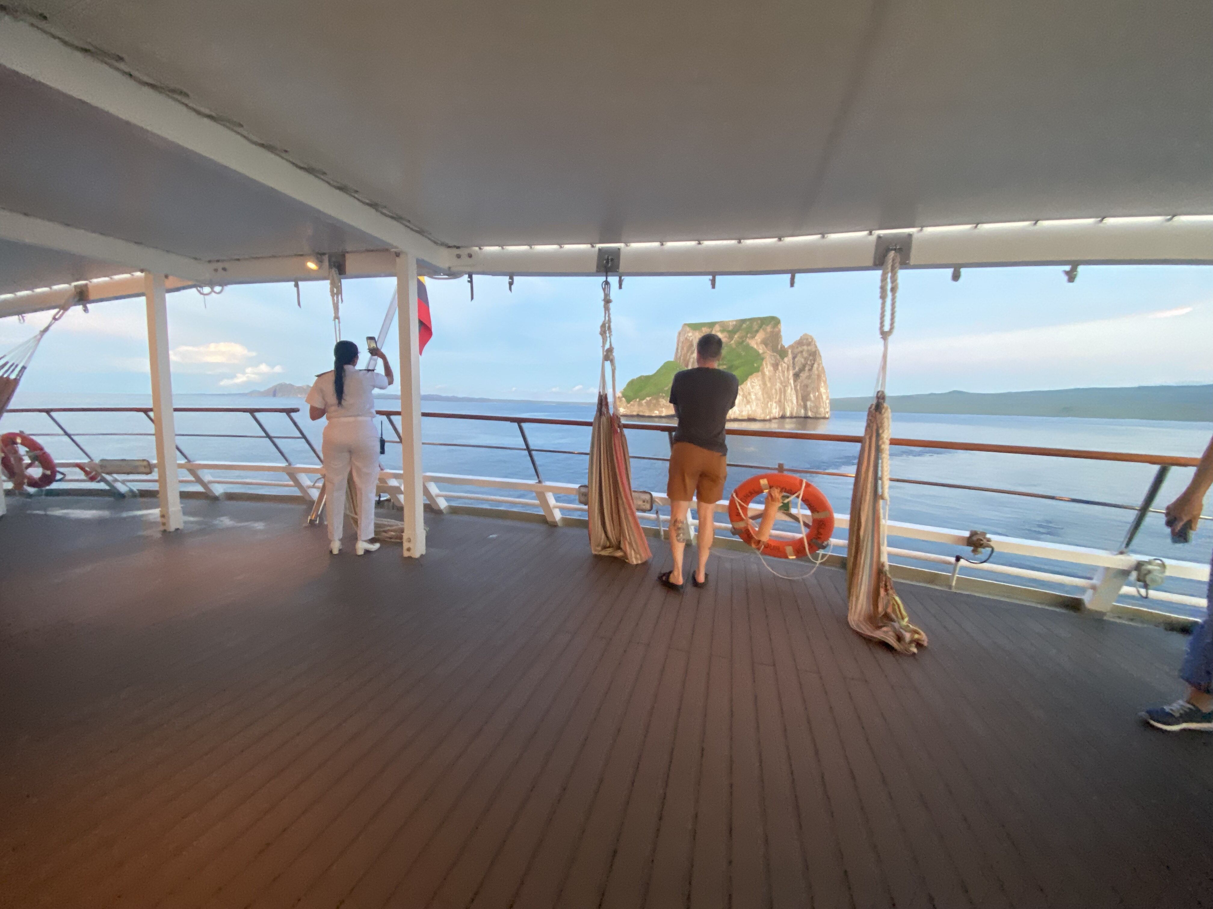Our final excursion of the day was a panga ride around Ecuador Volcano. This outing turned into a unique adventure as an unexpected rain shower added a special touch to the experience. Our guests donned ponchos and embraced the moment, making the ride even more memorable as we explored this remote and stunning landscape.
