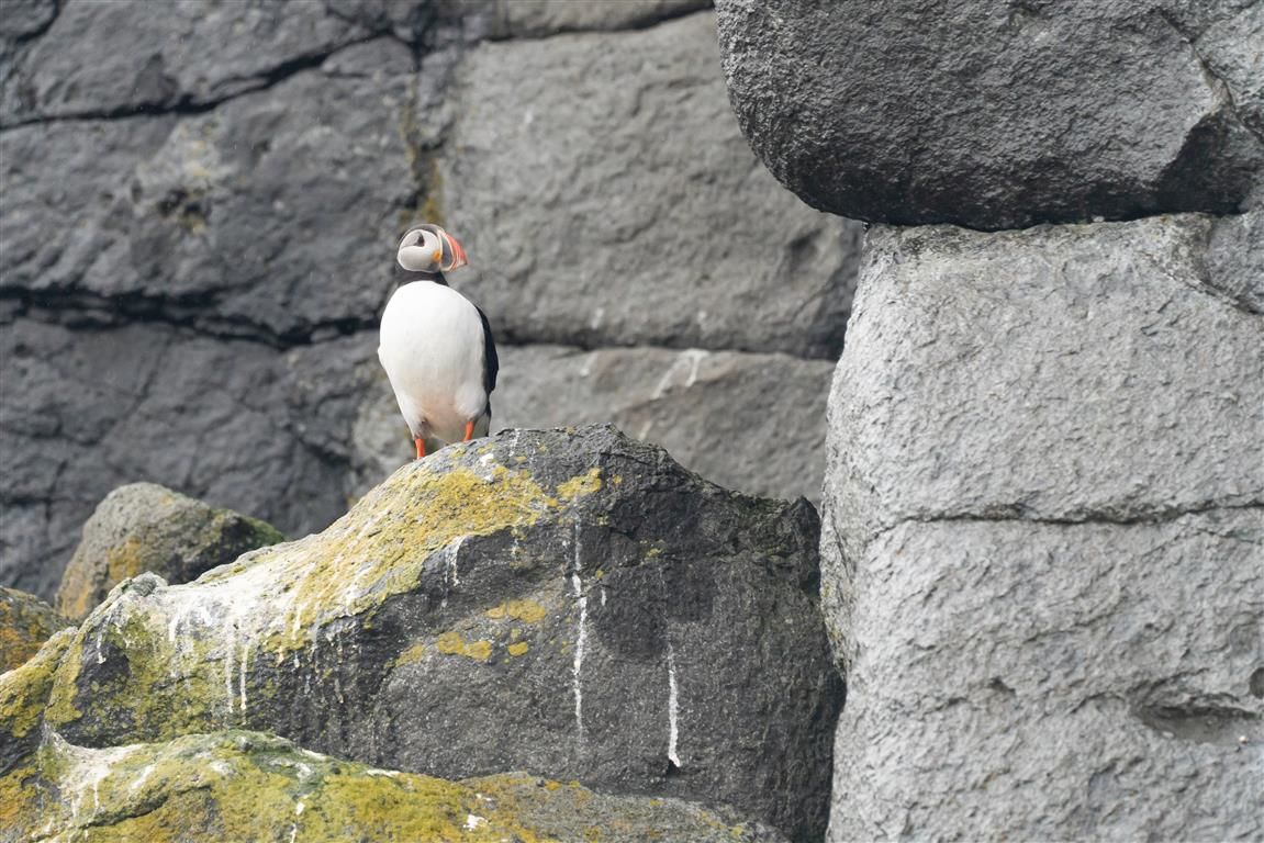 Today’s big adventure was a full day experiencing the Borgarfjordur Eystri area. This fjord is located on the east side of the island. The largest settlement is Bakkagerdi with ~100 residents. The town gets its name from the Alfaborg (Elf Rock) where many locals believe that the queen of the elves lives. Elves and trolls have been an ongoing theme in the sagas told by our Cultural Experts, Andreas and Claudia. The church in town has a painting by Johannes Sveinsson Kjarval of Jesus on the cross on Elf Hill. The local bishop refused to bless the painting due to Elf Hill being in it. Guests were able to explore the small town for half the day and the other half of the day hike or E bike in the surrounding areas. It was a beautiful day with a great balance of exercise, cool air, and relaxing independent exploration of the small town. The landing site for the Zodiacs is also home to a large puffin colony. Most puffins have already fledged, however we did see a few stragglers.