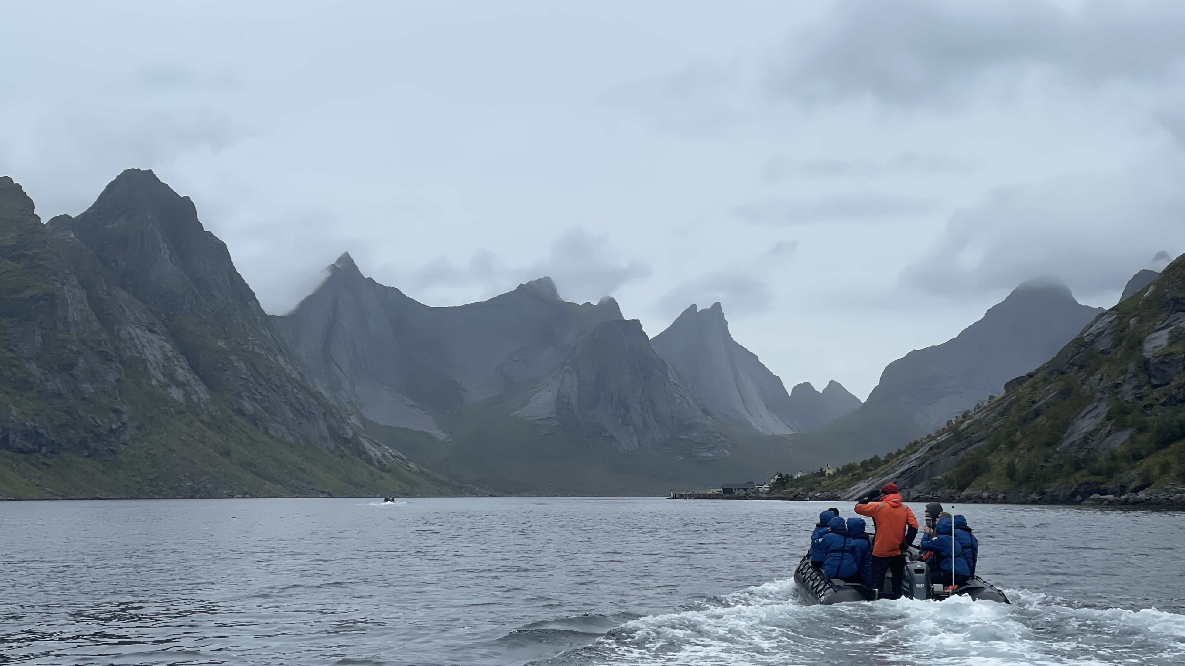 This morning we woke up at Hellemobotn at the inner end of Tysfjorden. This is a roadless and truly scenic fjord in northern Norway. The weather was rainy but cleared up just as our guests were set ashore. After breakfast, most of our guests chose to go hiking into a beautiful pine forest. The hikers followed a marked trail that reaches into Sweden. The medium hikers got up to a splashing waterfall, whereas the “long-long” hikers fought to an elevation of more than a thousand feet, reaching above the treeline. We saw lots of mushrooms and various wild berries along the trail: blueberries, bog bilberries, crowberries, and cloudberries. Our photo specialists gave useful advice to those who wanted to improve their photographic skills in the field. Hellemobotn is a tiny Sámi village that was permanently inhabited by Sámis until 1967. Sámis are an Indigenous group of people from Norway, through Sweden and Finland, and into the western part of Siberia in Russia. Families that originally came from a settlement of reindeer herders further east of Tysfjorden made their living in Hellemobotn as sea Sámis, combining salmon fishing, hunting, and small scale farming. Today, the houses and cabins in Hellemobotn are used by the descendants for leisure purposes only. During World War II, Norway was occupied by German Nazis, and many Norwegians had to flee to Sweden. Northern Norway is narrow, and many fleeing Norwegians got help from locals to find a safe route to the Swedish border. In the late afternoon, we entered into Trollfjorden, a scenic fjord with an extremely narrow entrance. Captain Oliver Krüss and his team gently maneuvered National Geographic Endurance through the narrow opening and turned around in this little fjord in a very impressive way! The day was rounded with the Captain’s delightful welcome dinner. What an incredible day of exploration in the fjords of northern Norway!