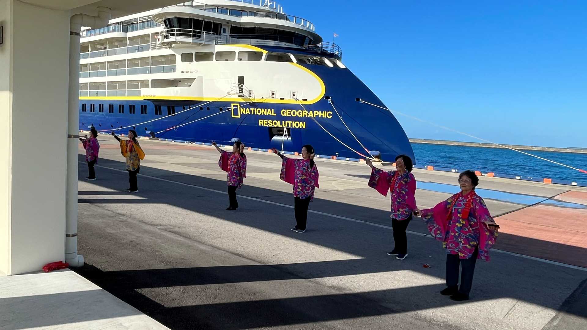Today we edged even closer towards Taiwan on our second to last day in Japan. We docked at lovely Ishigaki Island in the southern part of Okinawa prefecture and were greeted by a team of local women dressed in Okinawan kimono and dancing to traditional music. The Ishigaki Highlights tour began at Minsa Kogei Kan, a craft center specializing in the Minsa weaving technique from Okinawa that dates to the 16th century. The next stop was Ishigaki Yaima Village, which showcases relocated Yaeyama-style traditional residences and is home to a large number of squirrel monkeys. After enjoying a local music and dance performance, we enjoyed a glass-bottom boat ride on Kabira Bay before returning to the ship for lunch.