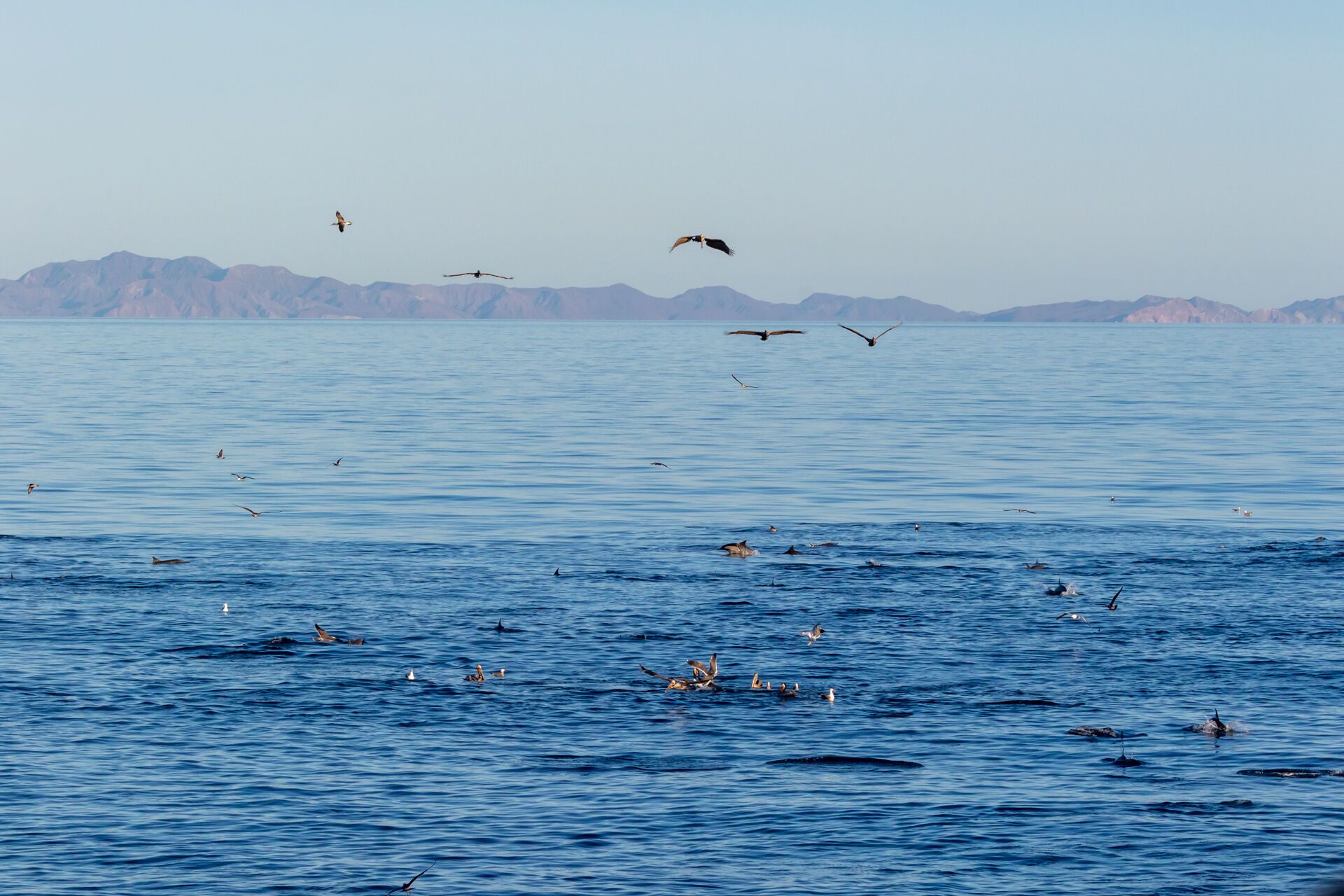 The first true day of our expedition began with a gloriously calm morning on the east side of Isla Carmen. We joined the staff in morning light to witness a feeding frenzy of dolphins, pelicans, gulls, billfish, and boobies. After breakfast, we met the expedition team and were given snorkeling equipment for the trip. Unfortunately, the briefings and staff intros were slightly upstaged by an incredible sighting of several very relaxed and accommodating blue whales! We got amazing looks at the Earth’s largest (ever) animal. The afternoon saw us test out the snorkel gear at the beautiful natural Amphitheatre of Punta Colorado on Isla San Jose. Later, we took to land to explore some of the arroyo dry washes, becoming acquainted with the environs of Baja California Sur.