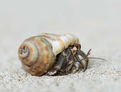 This morning the National Geographic Sea Lion arrived in Coiba National Park, one of Panama’s largest marine national parks, and a beautiful home to many birds, animals, and fishes. Morning exercisers looked at me in disbelief when I pointed out the island on our starboard side where we would spend the morning. It’s so small! Would we all fit? Envision a Gary Larsen The Far Side cartoon island with a few palm trees and large rocky outcropping. After breakfast we took our inflatable boats to the shore, swung our legs over the side, and stepped onto silky soft sand mixed with rocks and coral. As we made our way up the beach, movement caught our eyes. A double take revealed small pretty shells of varying shapes, colors, and sizes. As we continued on our way those pretty shells sprouted legs and began moving about. Hermit crabs! How fun! Charmed by their antics, we stopped to enjoy the welcoming show.