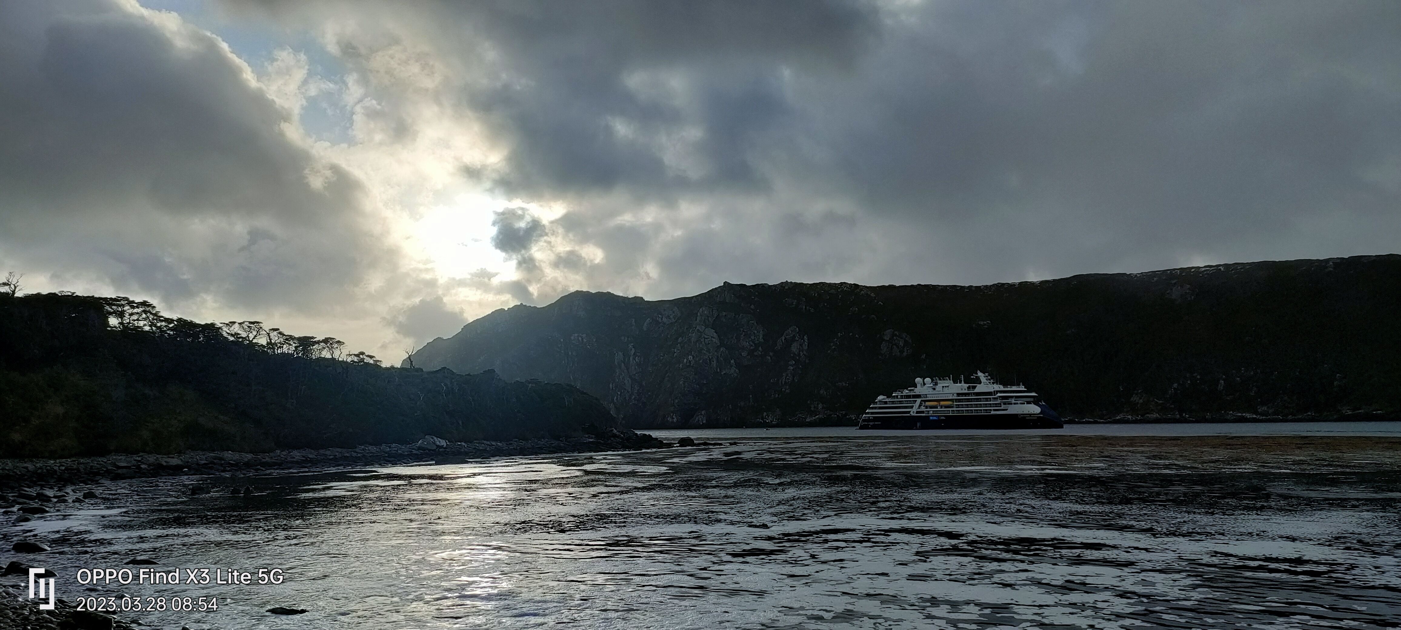 In the afternoon, we ventured to Puerto Cook on the island of Isla de los Estados, where most guests made a landing on the shores. Others elected to cruise around the bay in Zodiacs. Explorers enjoyed hikes along the wild coast of the fjord and visited the remnants of a historic prison originally erected in 1899. Once again, the undersea team explored the region’s extensive kelp forests.