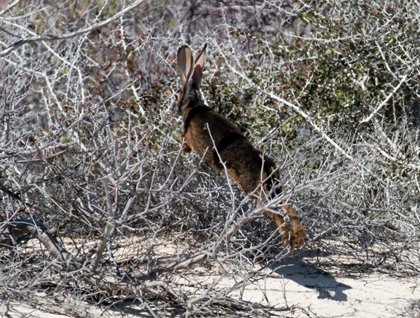 At sunrise, National Geographic Sea Lion was cruising comfortably along the dramatic east side of Isla Espiritu Santo. The destination for the final excursion of our two week photography expedition was Bahia Bonanza at south end of the aforementioned island. Many activities were planned in this diverse area, including hiking, kayaking, snorkeling and paddle-boarding. The Sea of Cortez is known as Mexico’s Galapagos, as there are the same and similar species that exist in the two disjunct archipelagos. Had Charles Darwin come here instead of the Galapagos, he may have come up with the same ideas, but would have had small lizards named after him instead of finches. Many endemic plants and animals that occur on the peninsula and the islands are found nowhere else in the world. We have been fortunate to find some of the unique flora and fauna that distinguishes this area during this voyage – large lizards and giant barrel cactus, the rattleless rattlesnake, and this morning, the black jackrabbit. It was a very pleasant morning exploring a portion of the Holy Ghost Island - a great place to contemplate all that we had experienced over the last two weeks.