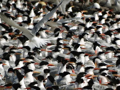 Most of us reached a spit crowded with hundreds of resting seabirds. Elegant terns stood in a tight mass flanked by groups of California gulls and brown pelicans. A peregrine falcon and several other disturbances abruptly flushed the birds into the air. The cacophony of their piercing screams was almost overwhelming as they lifted off and then quickly resettled once again. What a spectacular opportunity for photographers and non-photographers alike!