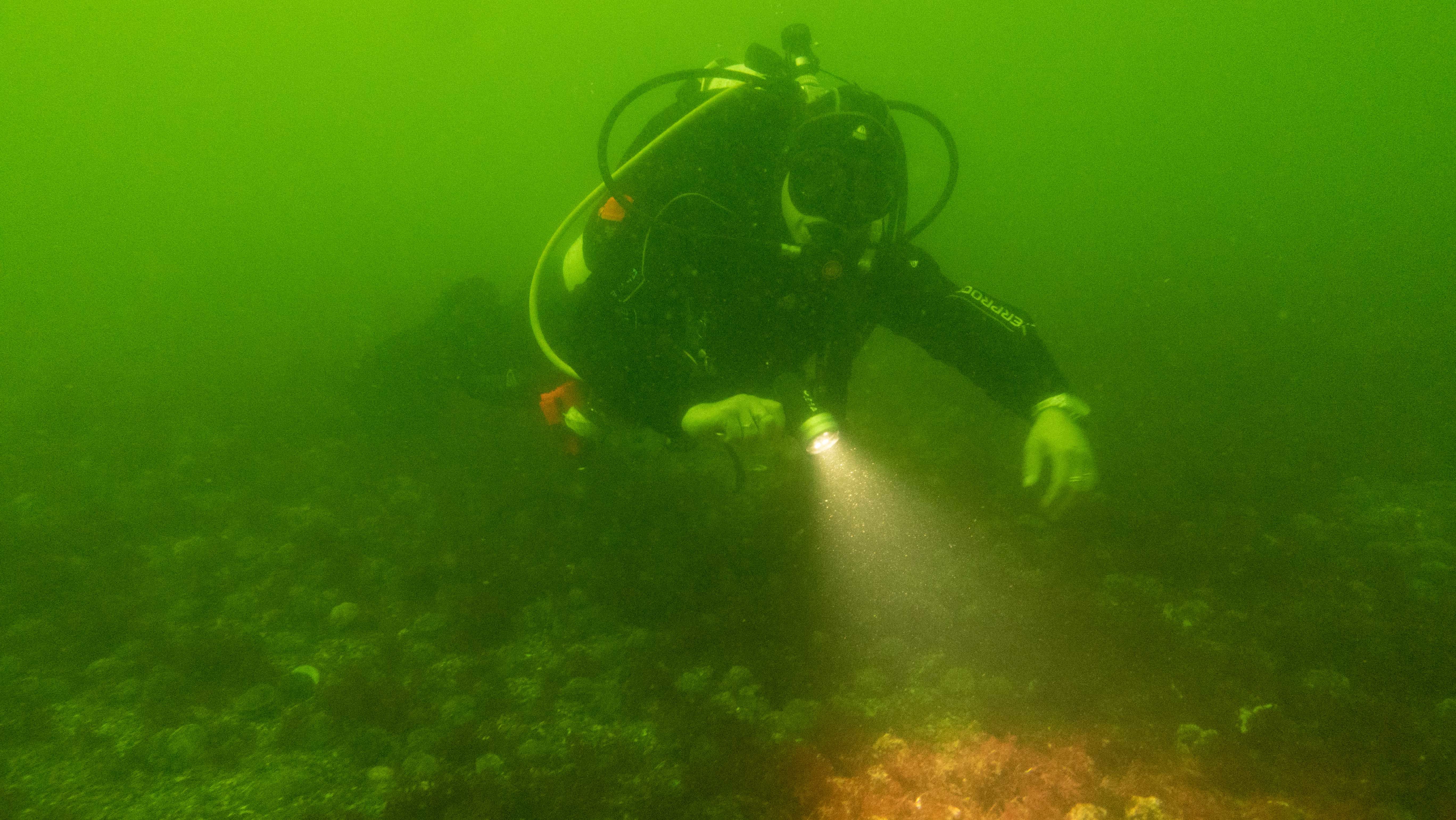 The dive team went out to explore at the bay underwater. We rarely get the opportunity to dive here, so we chose a place by just looking at the depth on the navigation charts. Other than the depth, we had no idea what we could find under the surface. As we descended, the water was green, and it became increasingly dark. At about fifty-five feet, we reached the sandy bottom, which was covered in algae. These are some of the creatures we found today. We could share the video with everyone, and invite them for a moment into the depths of Bahia Magdalena.
