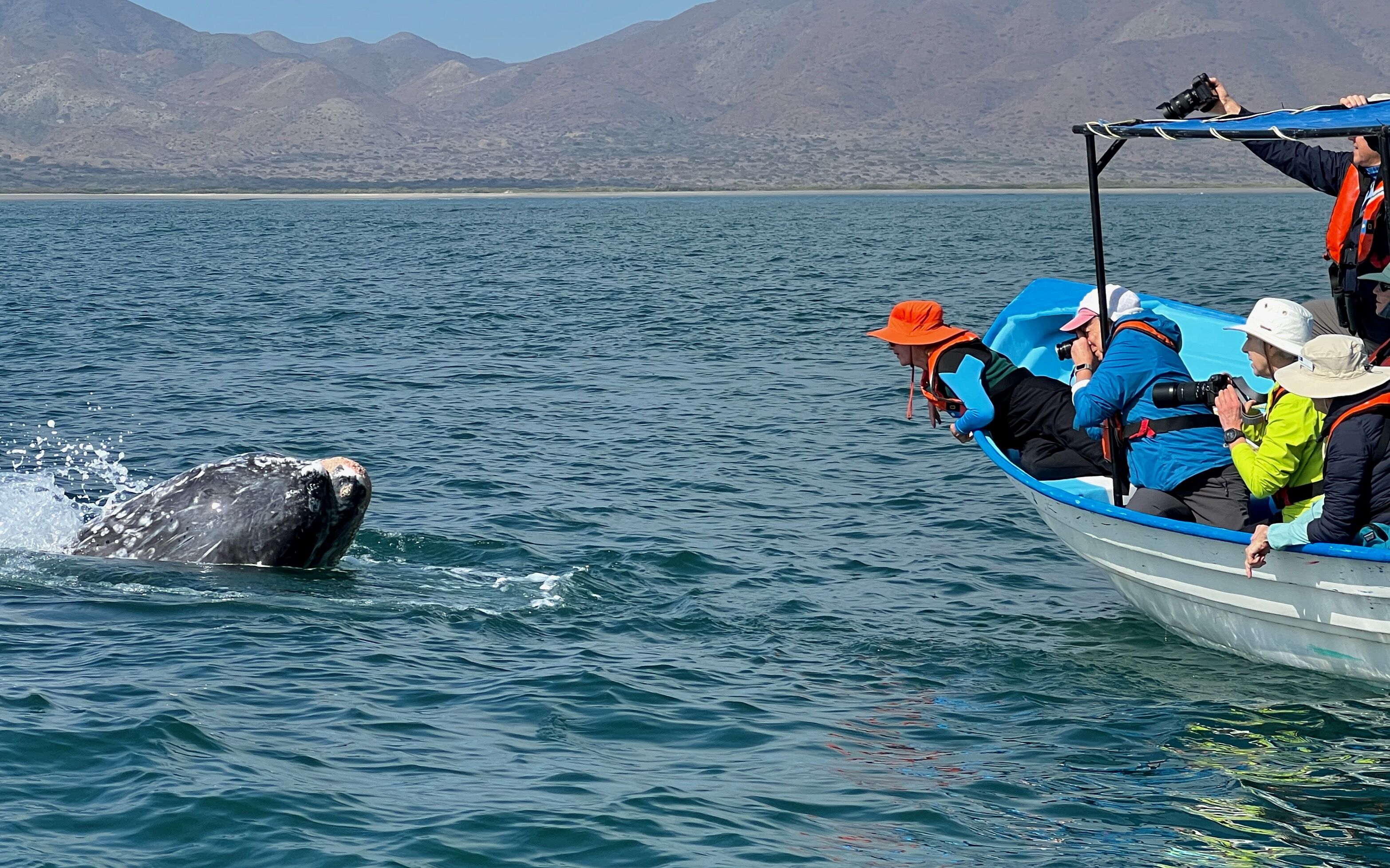 Today was another memorable day with a variety of surprising and enjoyable educational experiences. We awoke this morning on National Geographic Venture as it cruised north along the outside of Isla Margarita. Many delightful sightings of birds included masked boobies, western gulls, and Brandt's cormorants. The highlight of the morning was seeing the first California grey whales of the trip, which we witnessed at La Estrada, the mouth of Magdalena Bay that marks the northern end of Isla Margarita and the southern end of Isla Magdalena.