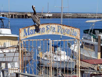San Pedro Mártir is volcanic in origin, yet appears largely white (and peppered with cactus) from the accumulated guano that has been deposited by its myriad feathered inhabitants. Until the early 1900s the island was a major site of guano harvesting in the Gulf of California. It is now a preserve, protecting the blue-footed boobies, brown boobies, red-billed tropicbirds, brown pelicans, and other seabirds that nest there. During both outings, we were delighted by the animated leaps and curiosity of many young, rambunctious, California sea lions that bobbed in the waters around our small boats.