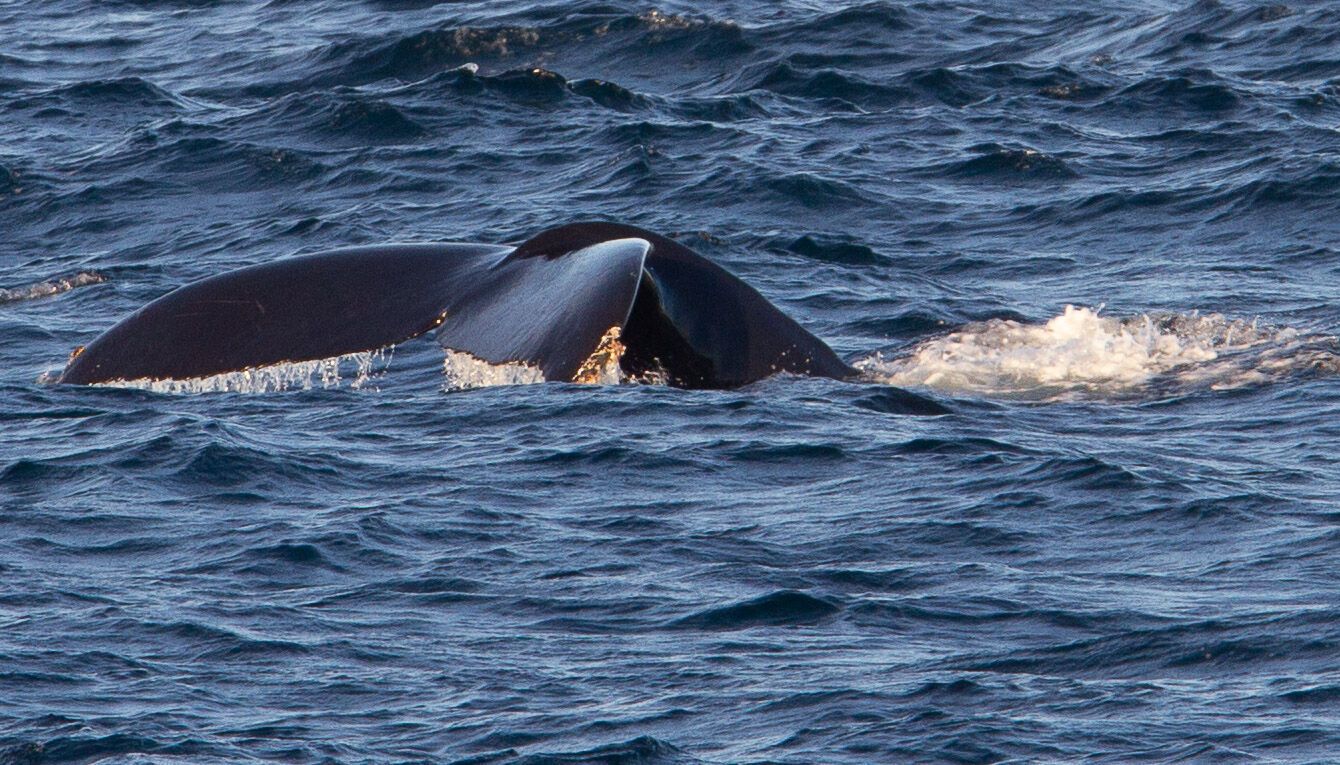 The afternoon saw us continuing our journey south, and we were visited by a particularly energetic pod of short-beaked common dolphins who burst through the swells as they flocked to our bow. While the dolphins rode with us for a while, delighting everyone with their leaps and twirls, a couple stayed with us for another ten minutes after the others had left, zigzagging in unison, leading us still further down this beautiful coast.