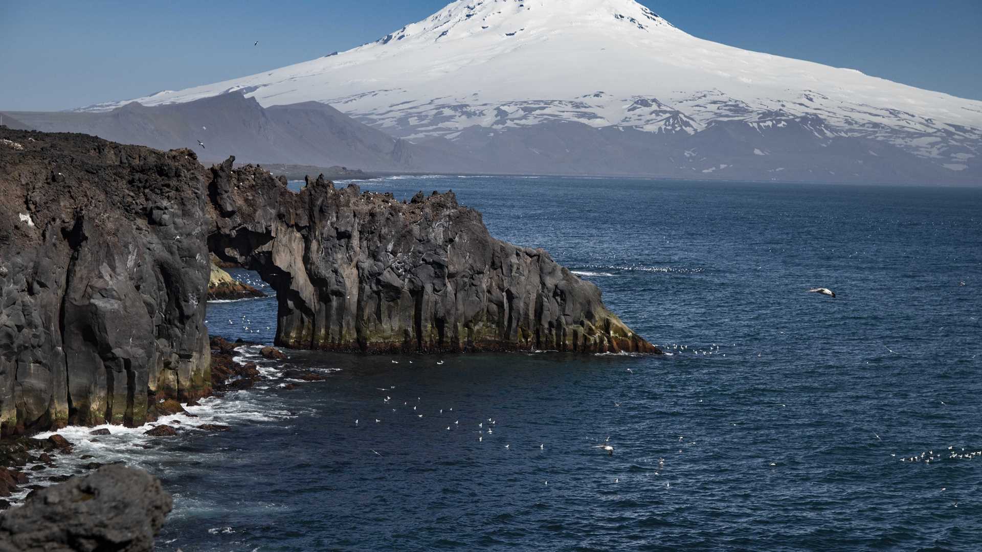 There is something mysterious and mystical about a foggy morning at sea. For a ship full of guests expecting to make land on an isolated island in the High Arctic ─a difficult feat even on clear days ─fog is a bit disheartening. Such was the case as we awoke this morning, sailing towards Jan Mayen, a group of volcanic islands belongs to Norway. You could say that Jan Mayen is the very definition of “out of the way,” or even “in the middle of nowhere.” A weather map of the islands could include the words foggy, misty, chance of rain, and heavy winds, and it would be accurate about 85% of the year. The fog this morning was merely testing our resolve, however. As we approached the islands, the fog lifted, and bright sun and blue sky appeared. As the curtain of mist rose, a wondrous sight met our eyes: beautiful Jan Mayen.